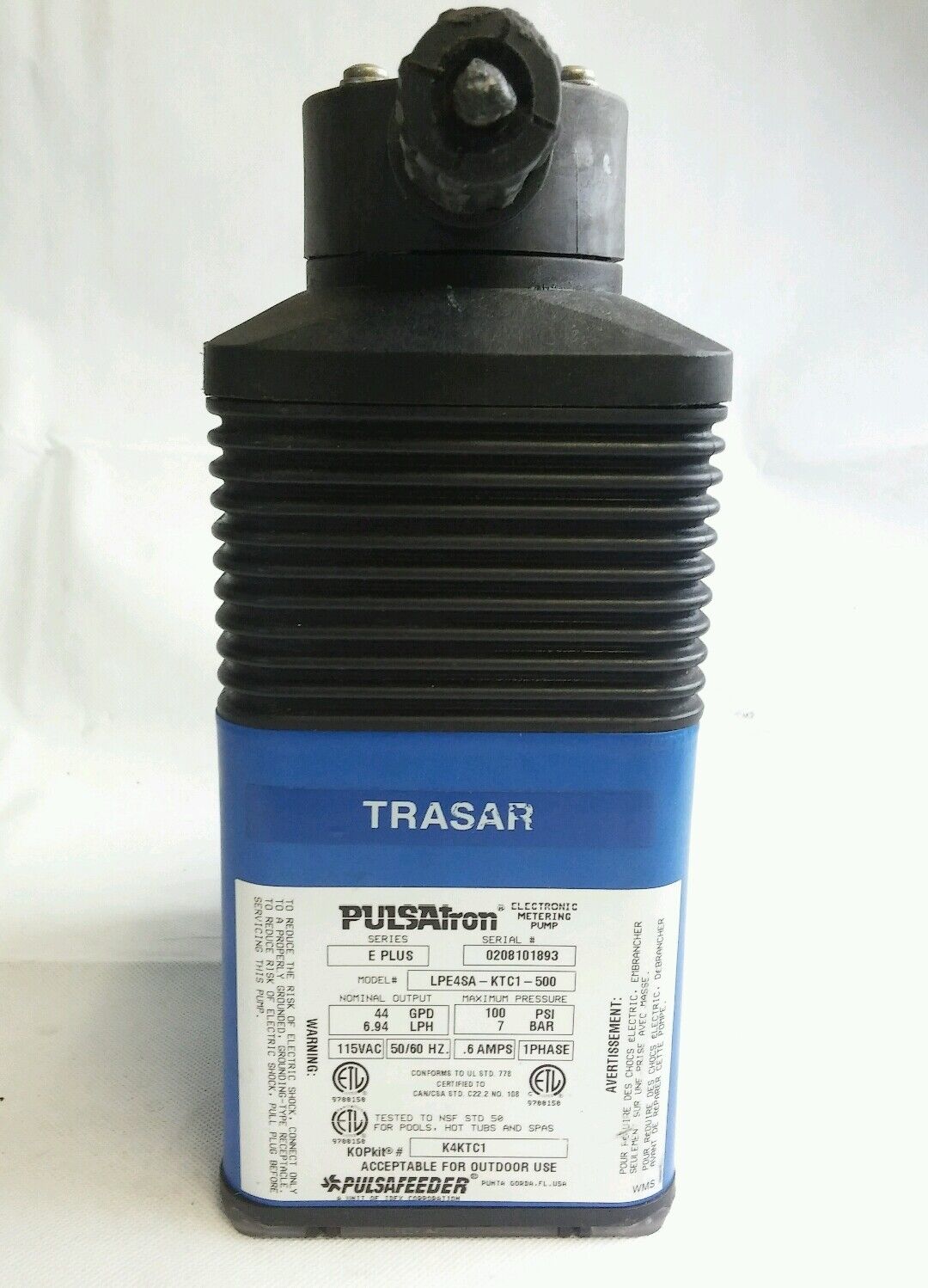 154009 Old-Stock, Pulsafeeder LPE4SA-KTC1-500 Electronic Metering Pump,0.60 Amps