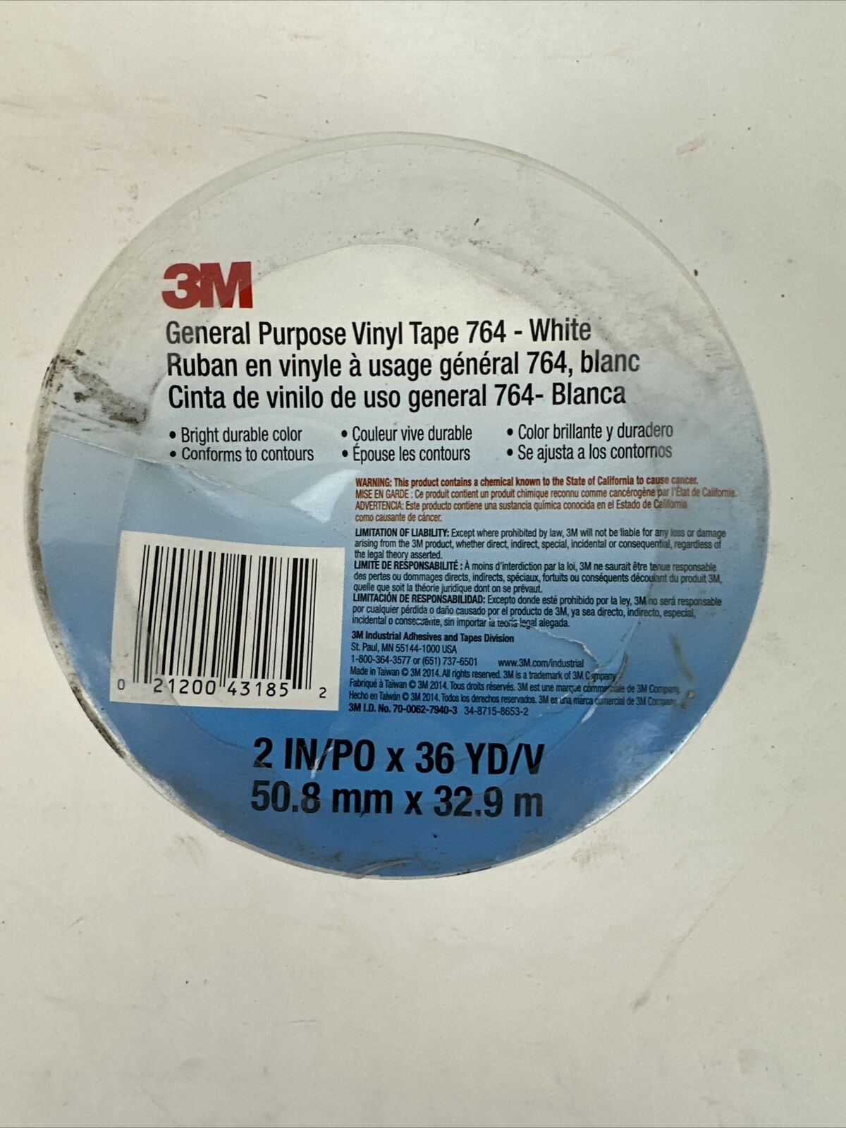3M GENERAL PURPOSE VINYL TAPE 764 WHITE 2IN X 36YD 50.8mm X 32.9m (LOT OF 3)