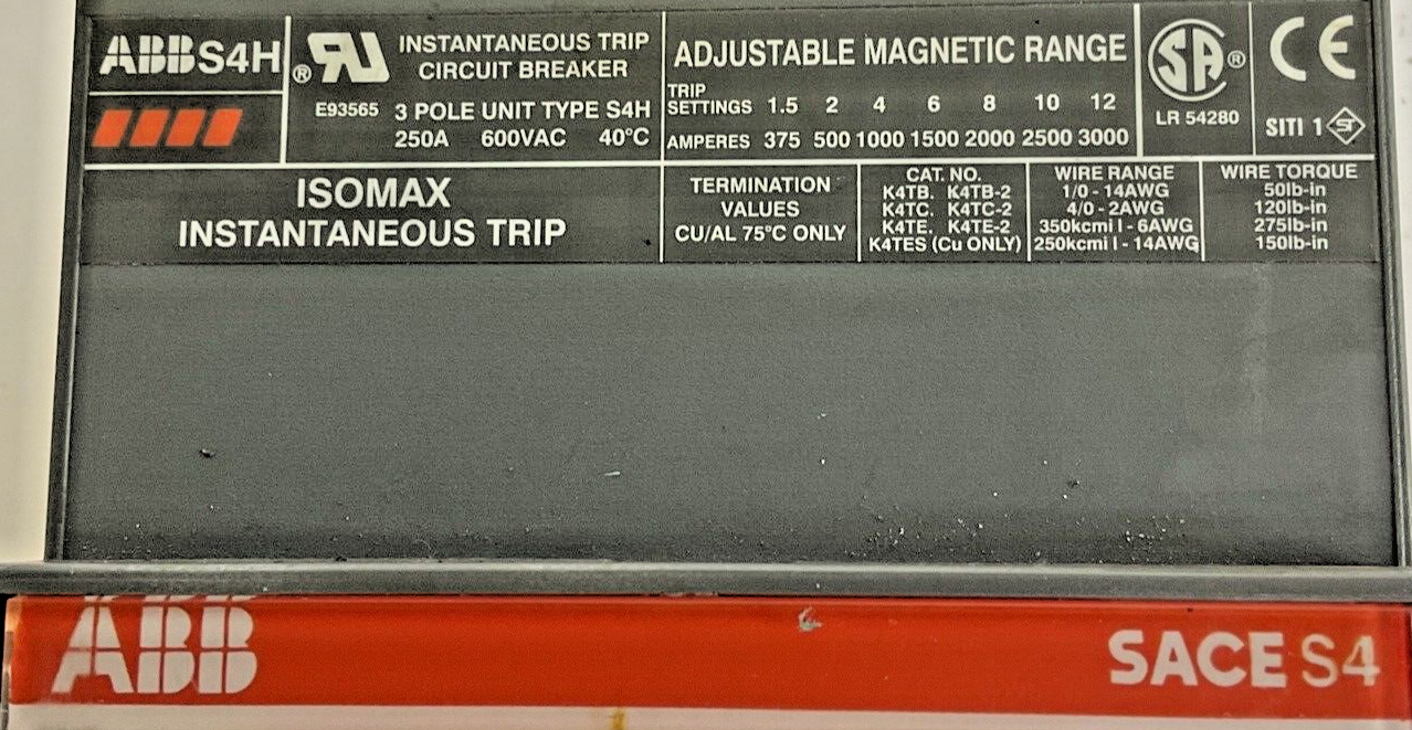 ABB SACE PR211 S4 CIRCUIT BREAKER 250A 3POLE 600VAC