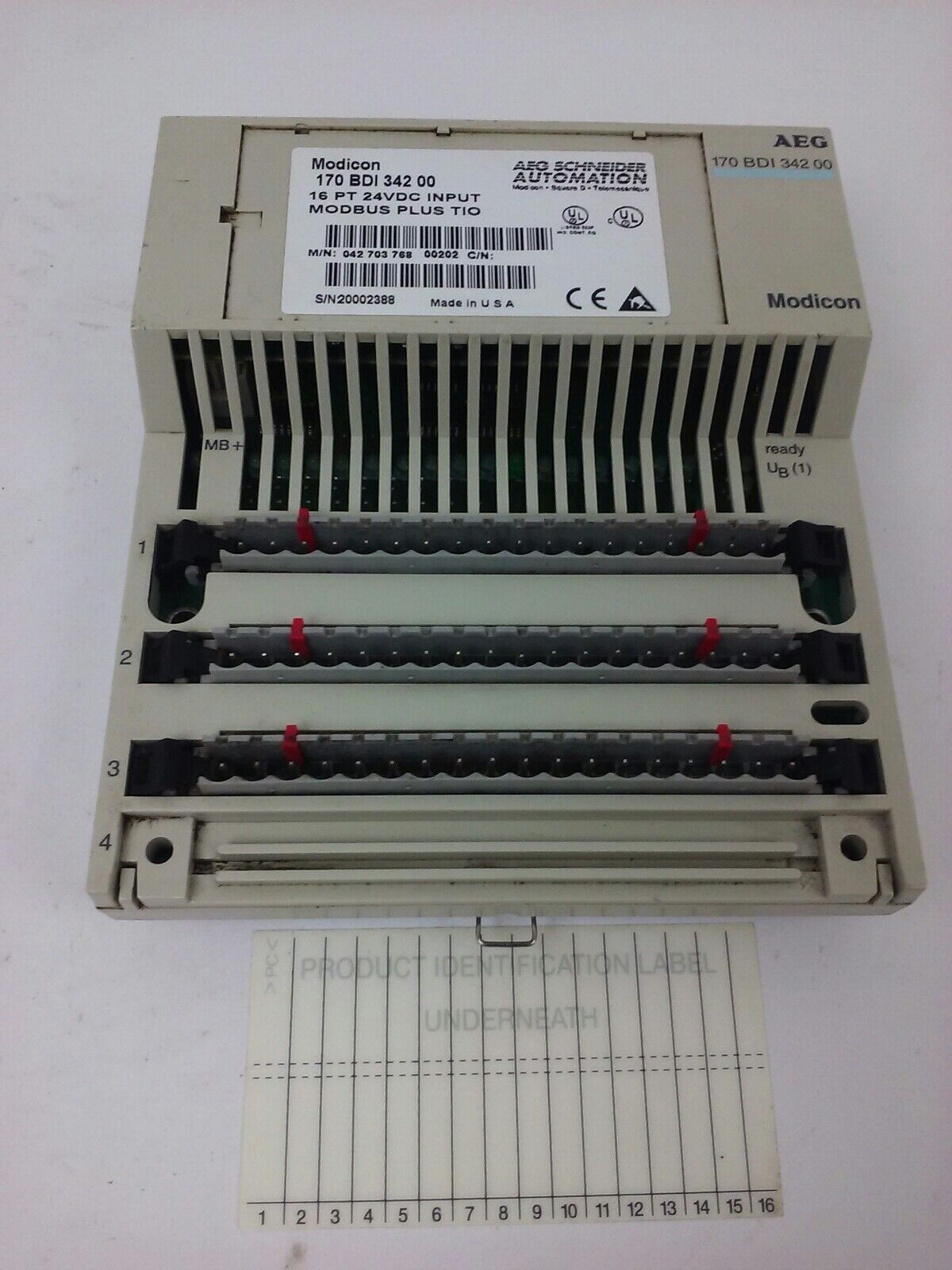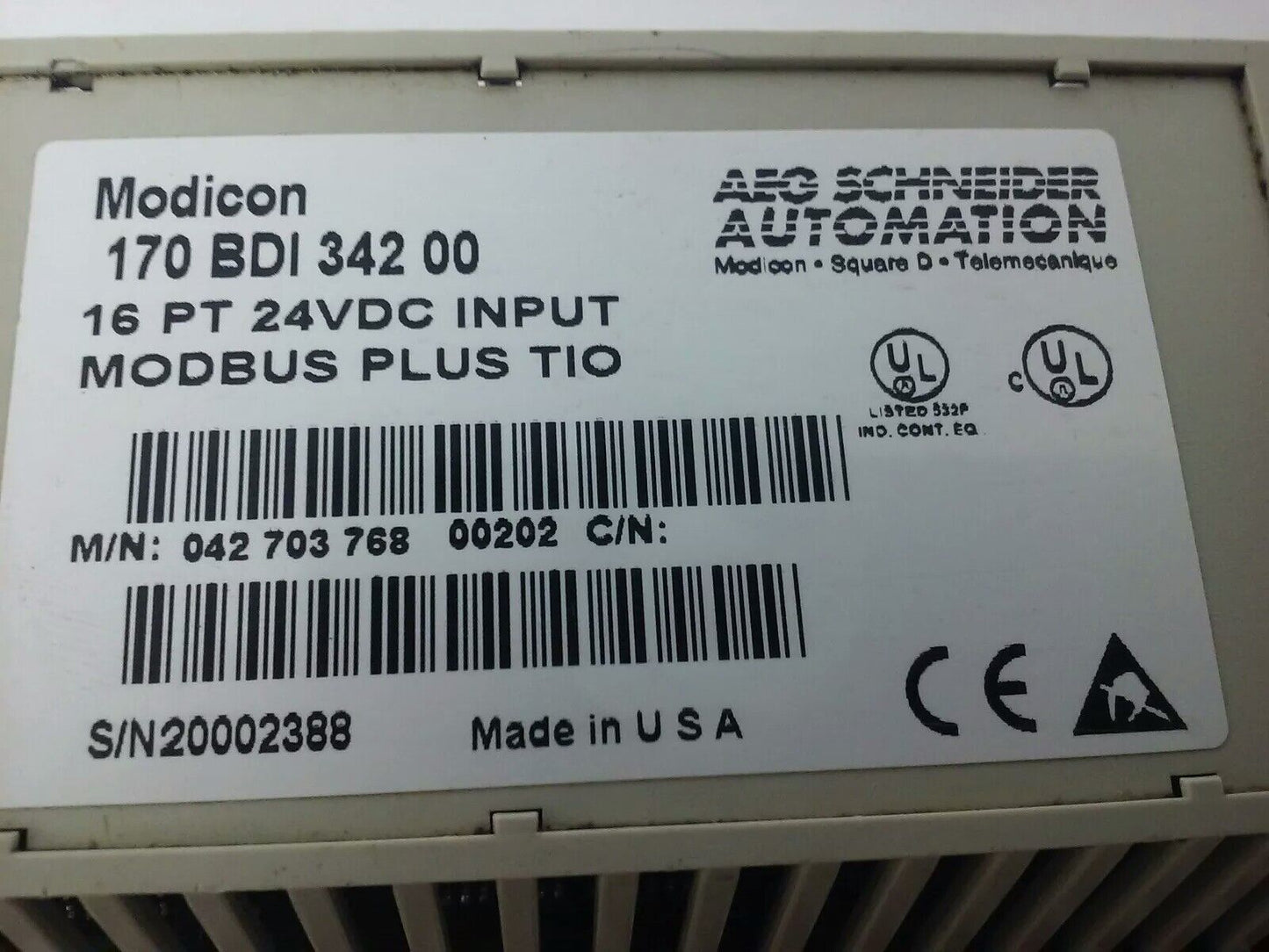 AEG SCHNEIDER AUTOMOTION, 170BDI34200, MODICON MODBUS PLUS TIO , 16PT, 24VDC INPUT, USED