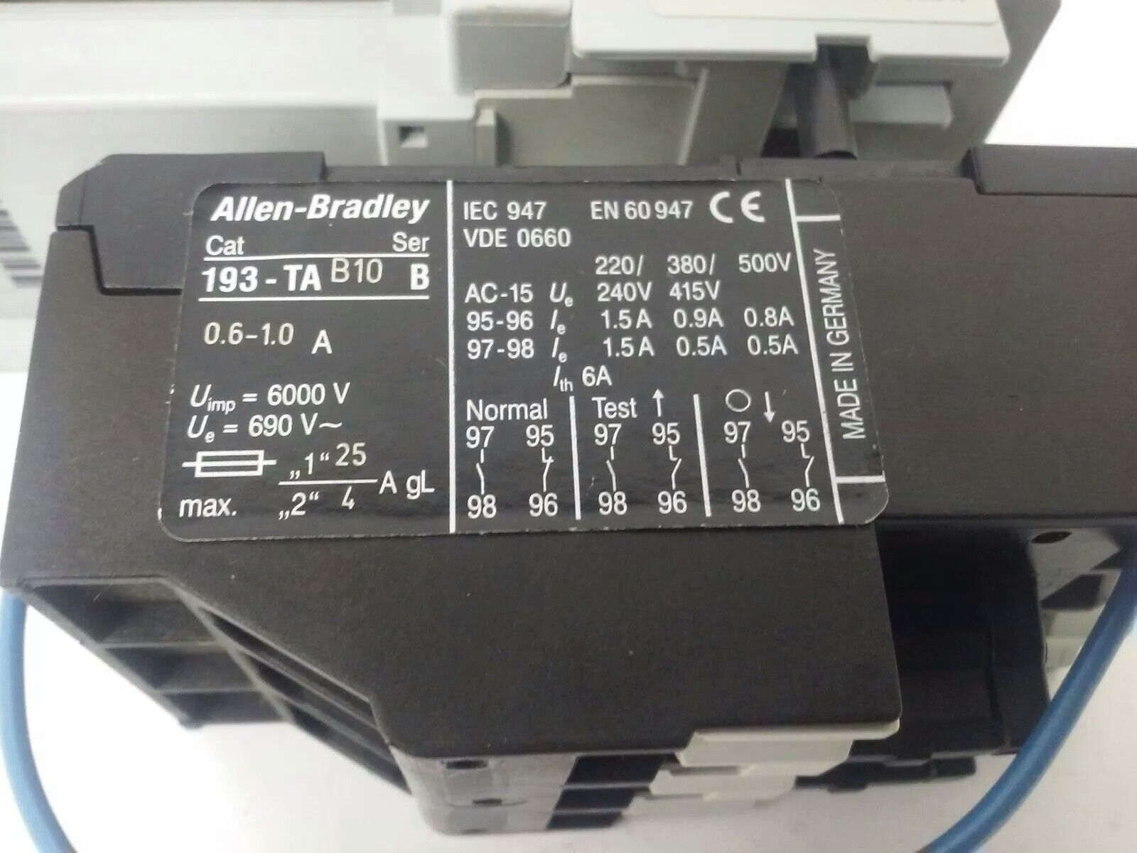 ALLEN BRADLEY 100-C09D*10 SER. A,CONTACTOR,3PH,600V,25A,24VDC COIL ,W/ 193-TAB10