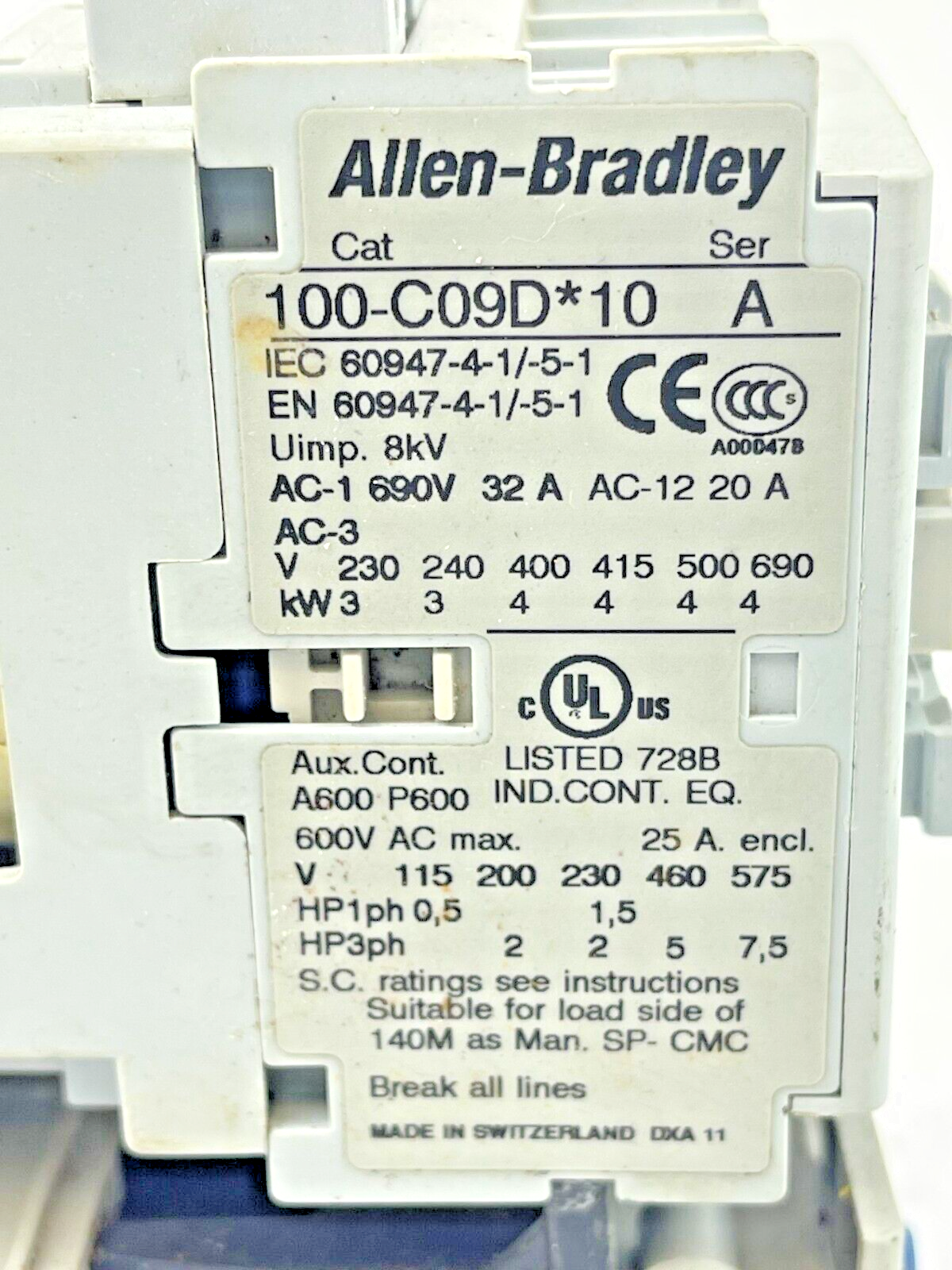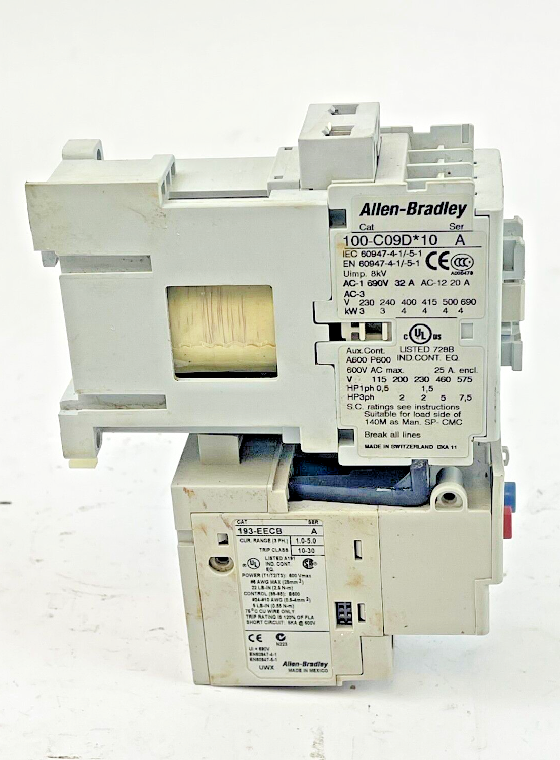 ALLEN-BRADLEY 100-C09D*10 SER. A CONTACTOR W 24VDC COIL & 193-EECB RLY SER. A