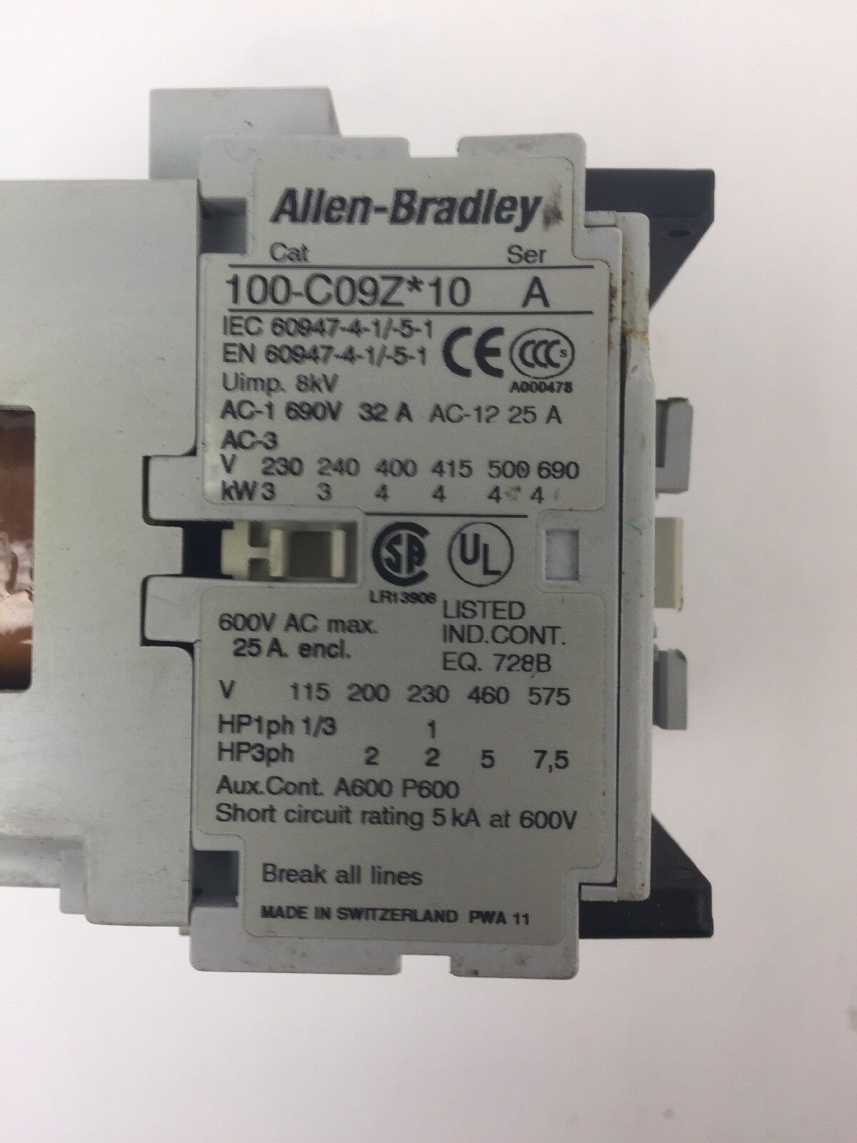 ALLEN BRADLEY 100-C09Z*10 REVERSING CONTACTOR 600VAC 25A COIL 24VDC