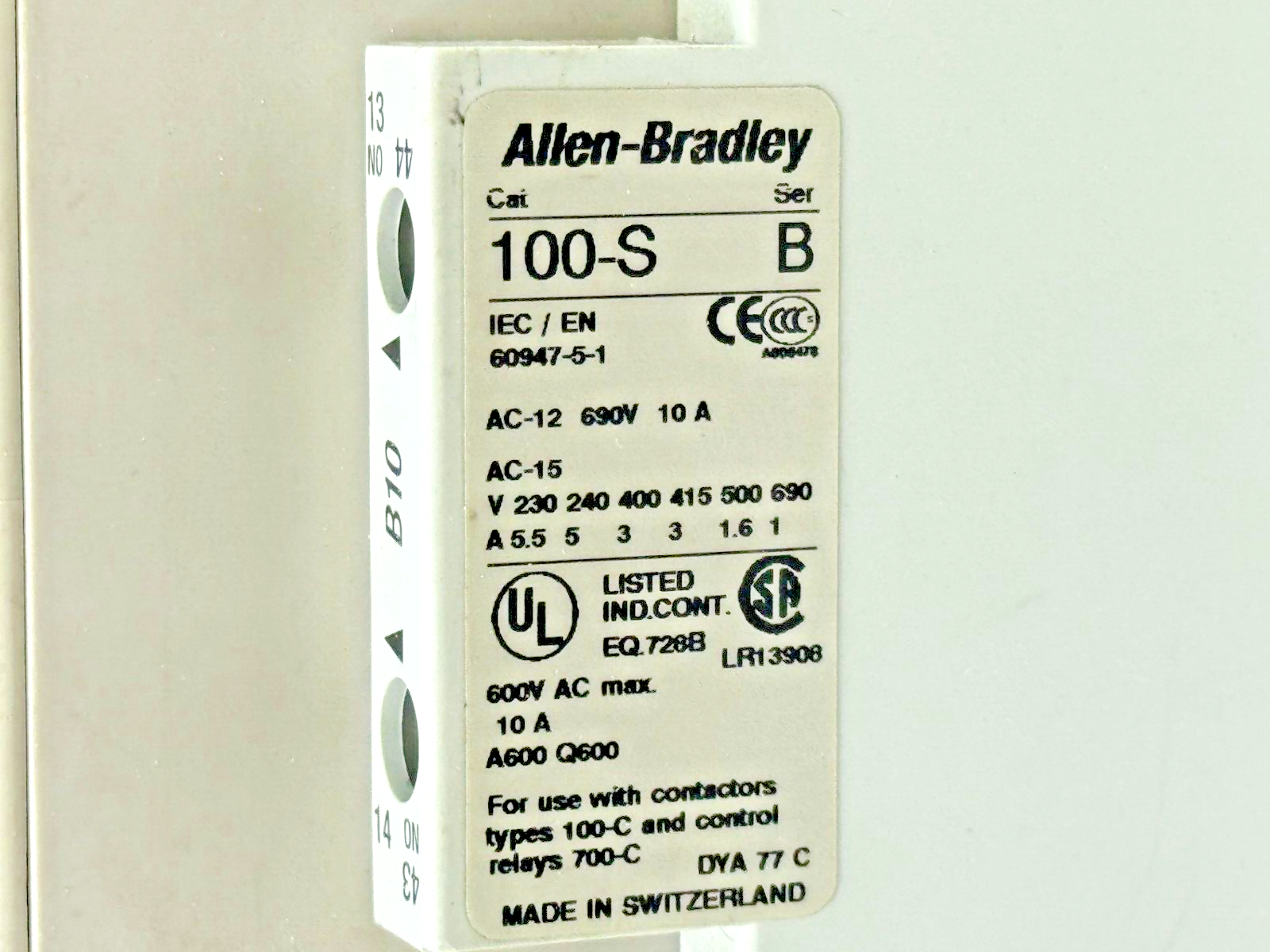 ALLEN-BRADLEY 100-C43Z*00 SER. A CONTACTOR W 24VDC COIL & 100-FSD250 SER. A SURGE SUPPRESSOR & 100-S SER. B AUXILIARY CONTACT