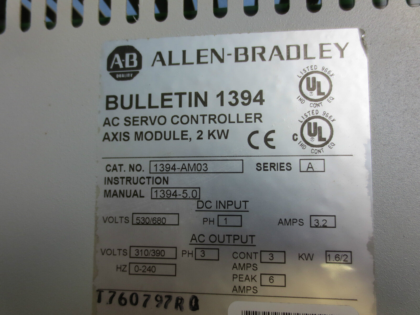 ALLEN-BRADLEY 1394-AM03 Ser. A - AC SERVO CONTROLLER AXIS MODULE 2KW
