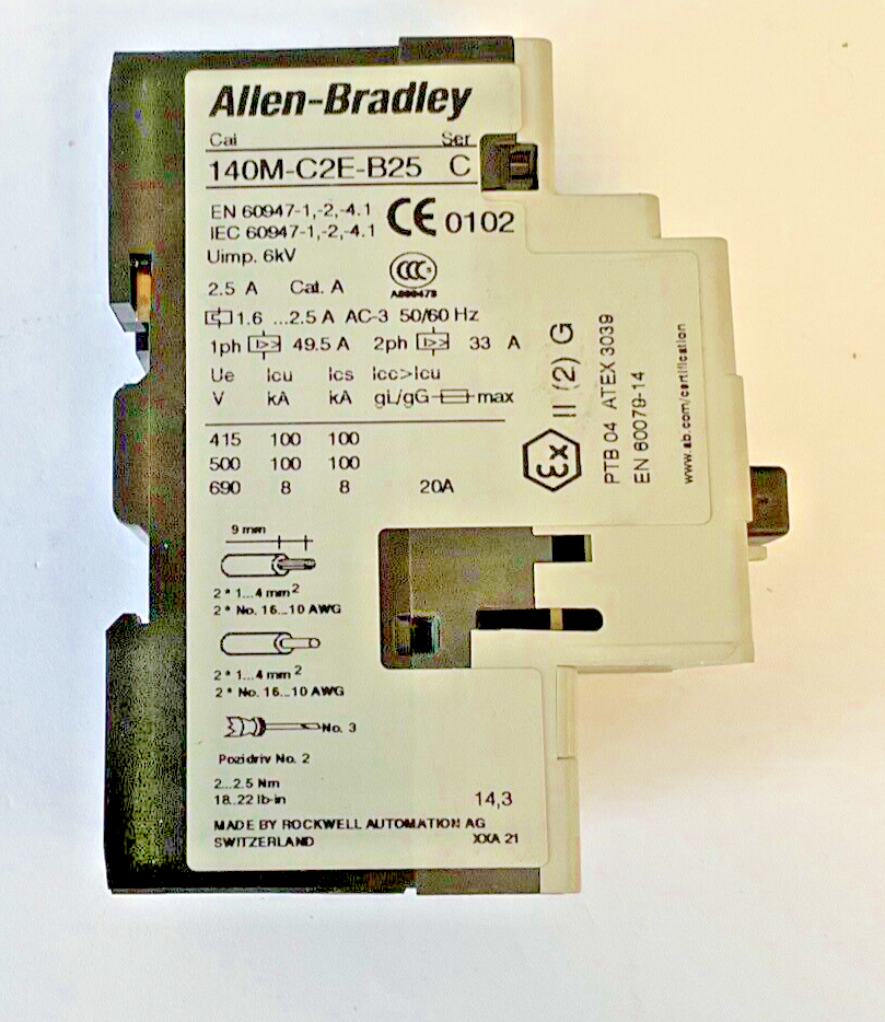 ALLEN BRADLEY 140M-C2E-B25 SER.B MOTOR PROTECTOR W/140-C-A AUX CONTACT SER.A