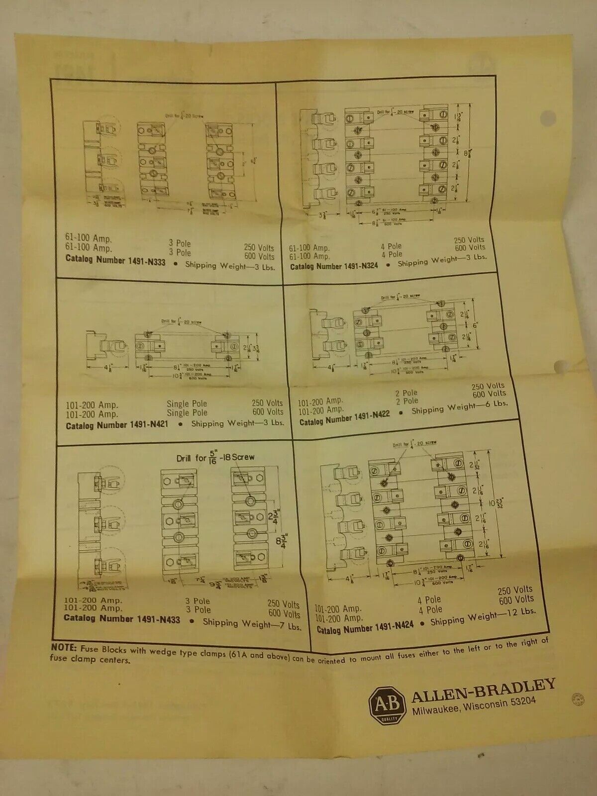 ALLEN BRADLEY 1491-N333 FUSE BLOCK,61-100A, 250- 600V, 3P, W/ X-410710, PARTS