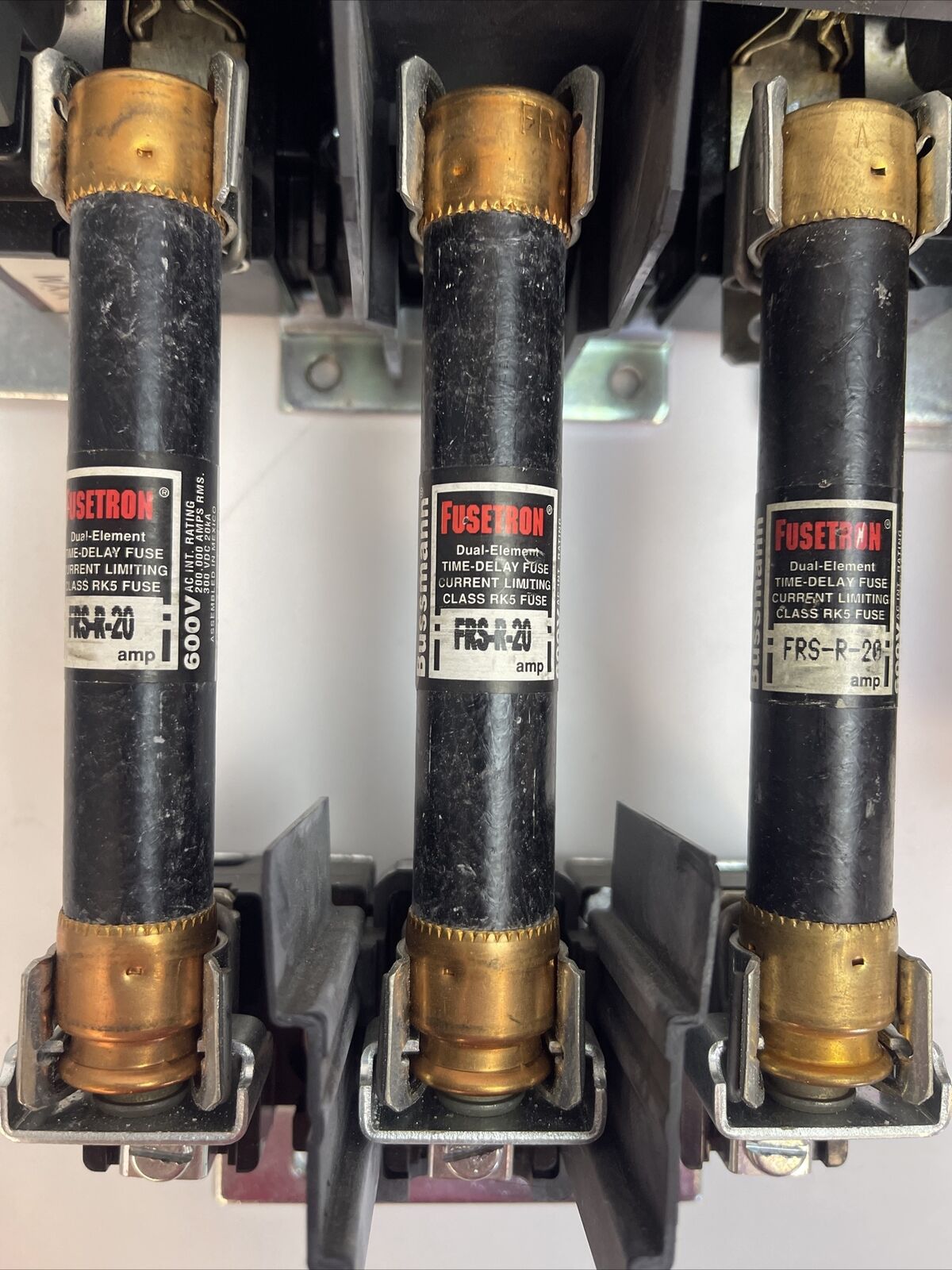 ALLEN BRADLEY 1494V-DS30 FUSIBLE DISCONNECT SWITCH SER D 30A 600VAC 20HP 250VDC 1494V-FS30 SER D 30A 600V FRS-R-20 FUSE 20A 600VAC