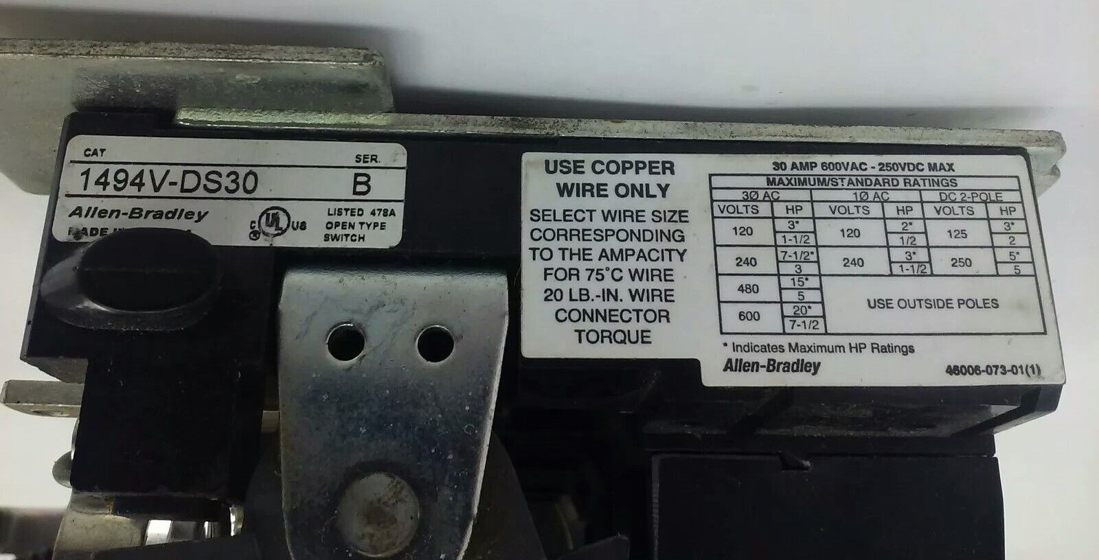ALLEN BRADLEY 1494V-DS30 SER. B, FUSIBLE SWITCH, 3PH, 3P, 30A, 600V