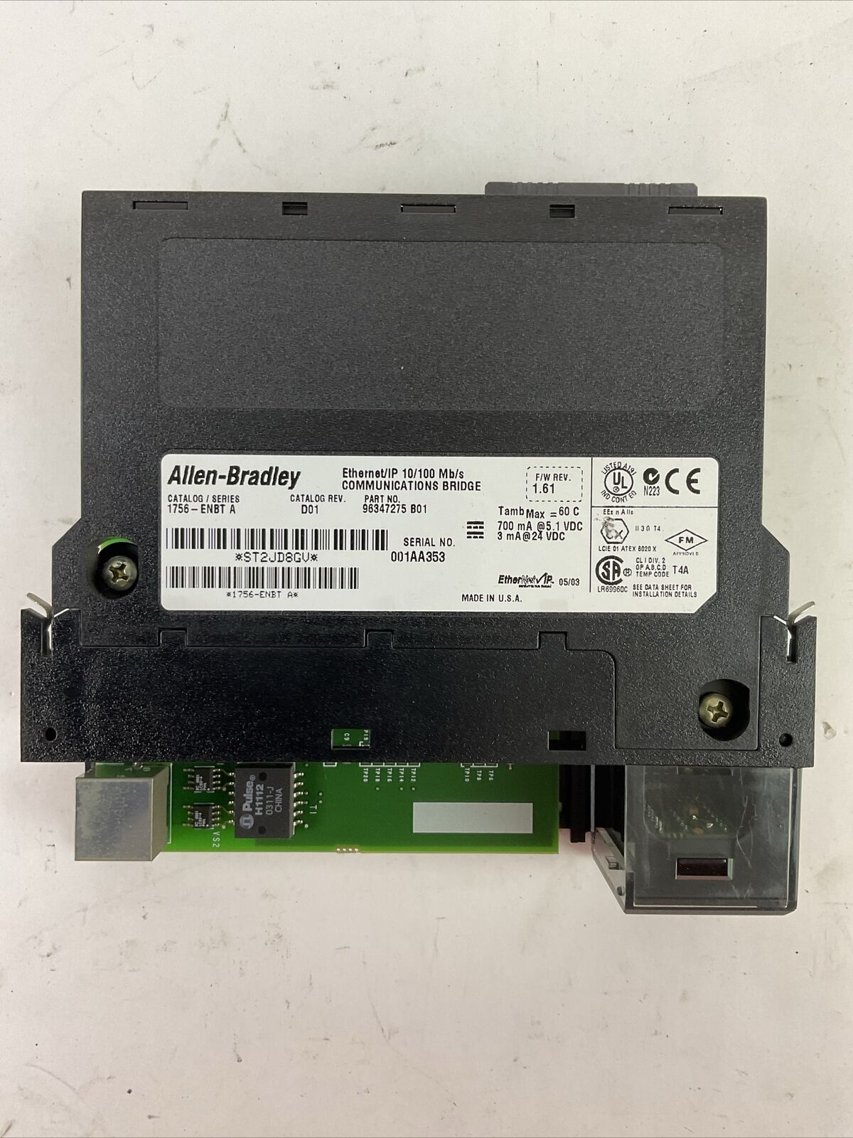 ALLEN BRADLEY 1756-ENBT SER A CAT REV D01 F/W REV 1.61 ETHERNET/IP COMMUNICATION