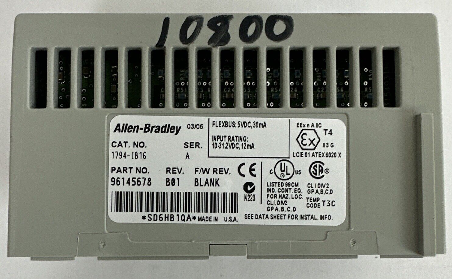 ALLEN BRADLEY 1794-IB16 24VDC SINK INPUT MODULE SER A REV B01 F/W REV BLANK