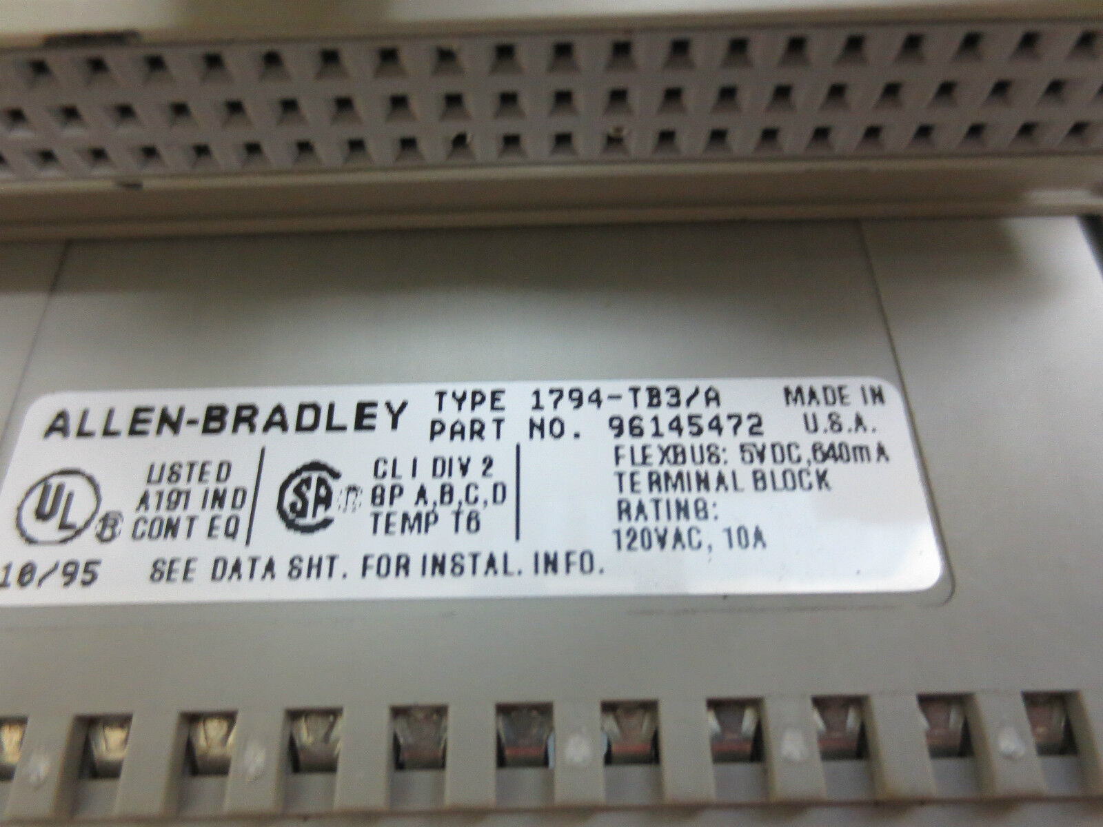 ALLEN-BRADLEY 1794-TB3/A FLEXBUS TERMINAL BLOCK & 1794-OAB/A OUTPUT MODULE