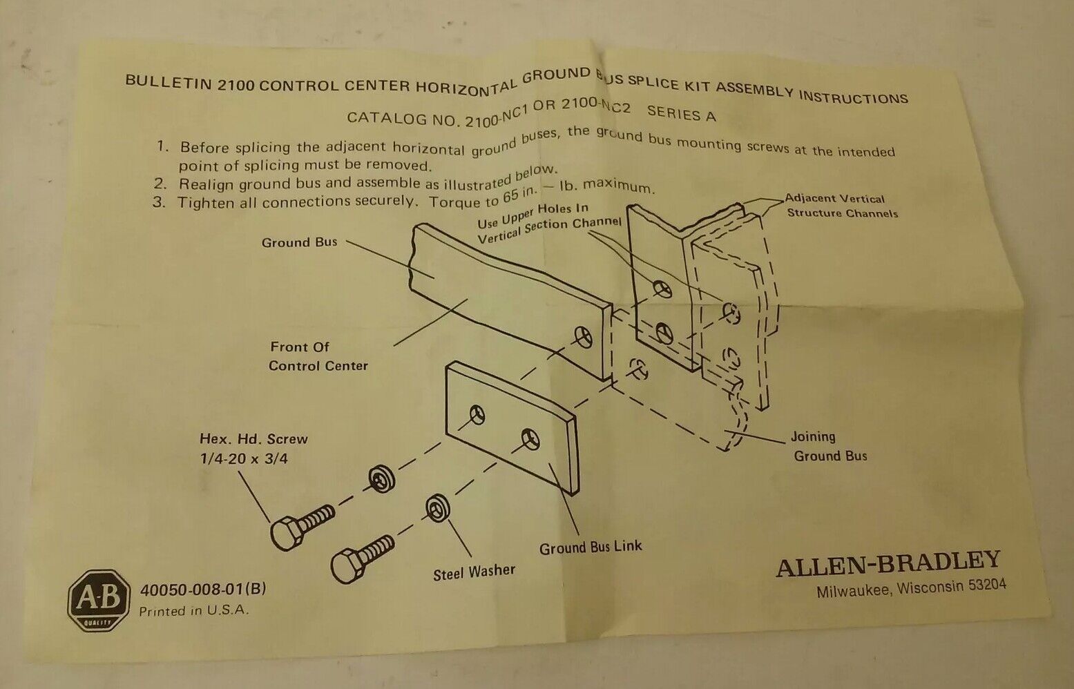 ALLEN BRADLEY 2100-NC1 SER. C, HORIZONTAL GROUND BUS SPLICE KIT 1/4'' X 1''