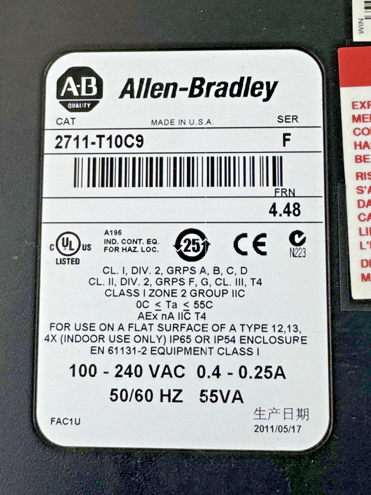 ALLEN-BRADLEY - 2711-T10C9 SER F/FRN 4.48 - PANELVIEW 1000 ASSEMBLED TERM