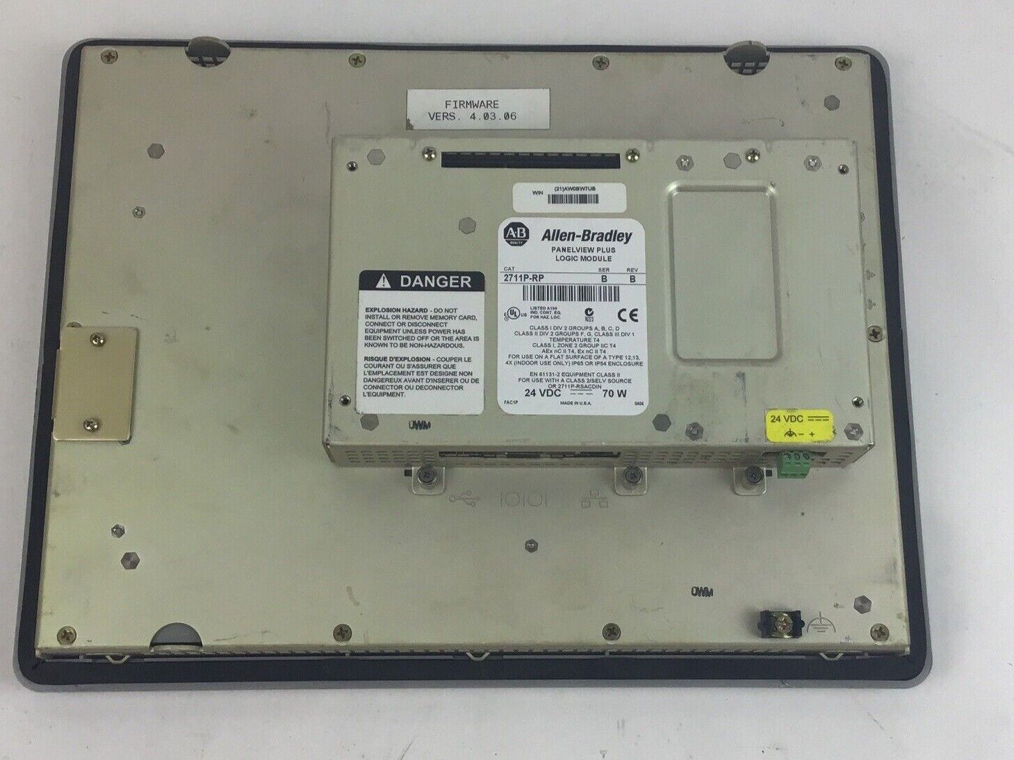 ALLEN BRADLEY 2711P-RP PANELVIEW PLUS LOGIC MODULE SER.B REV.B 24VDC 70W
