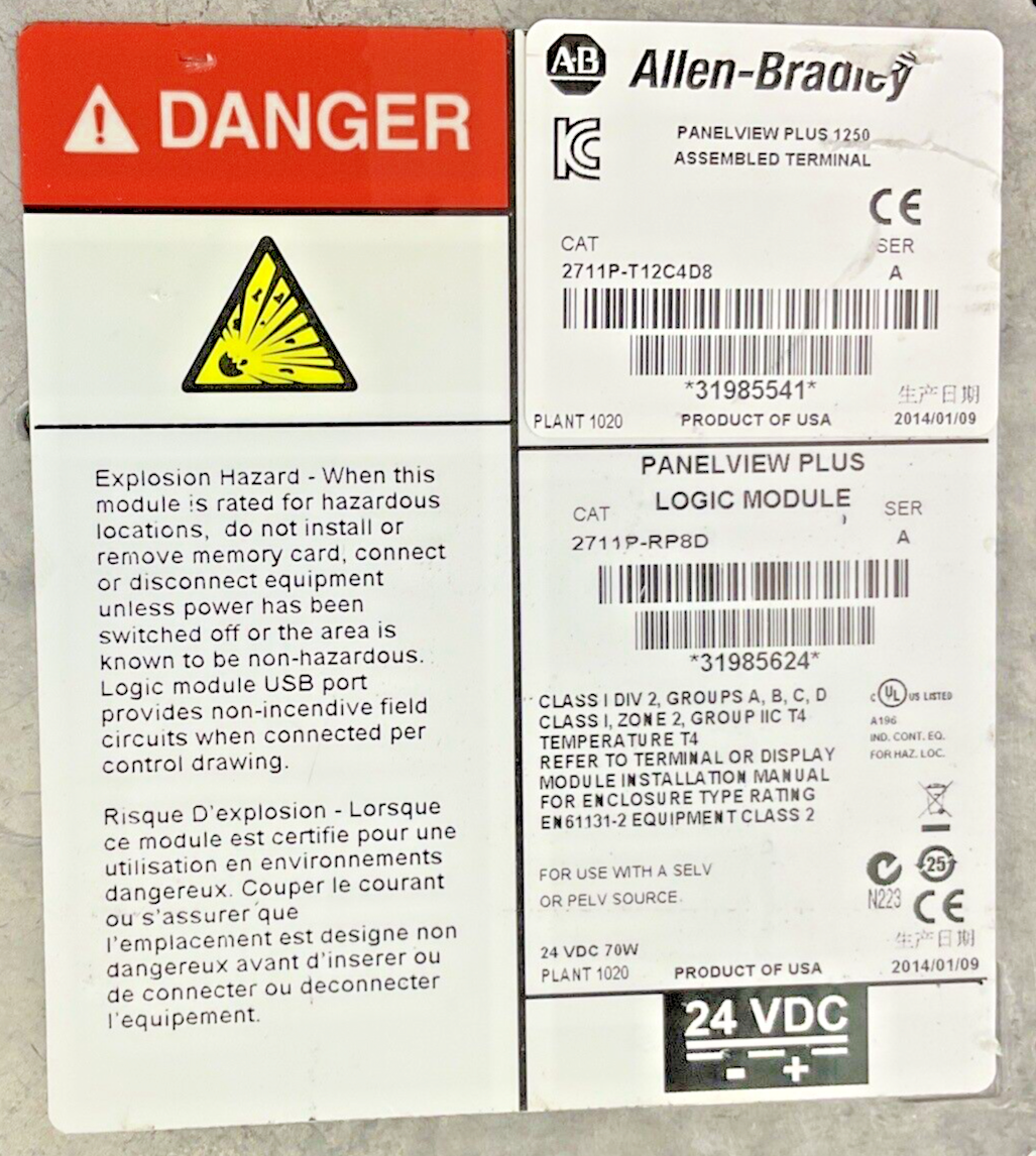 ALLEN BRADLEY 2711P-T12C4D8 INTERFACE PANEL SER.A 2711P-RDT12C SER.C, 2711P-RP8D