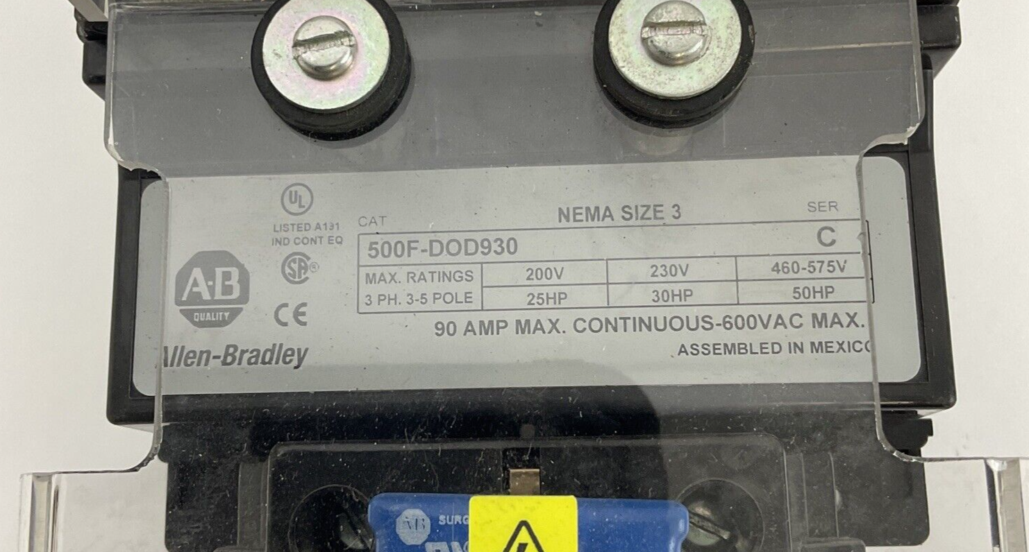 ALLEN BRADLEY 500F-DOD930 STARTER SER.C SIZE3 600V 50HP 600VAC