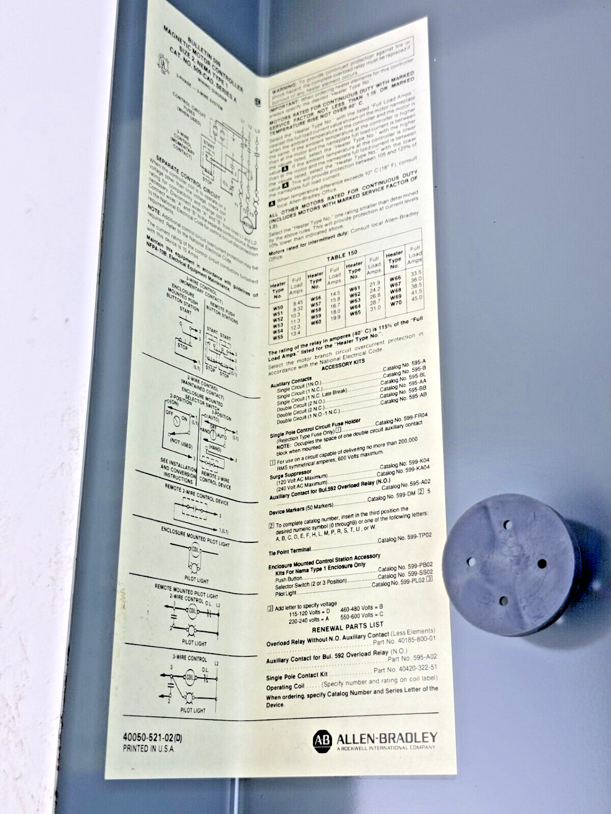 ALLEN-BRADLEY - 509-CAD SER. A -MAG MOTOR CONTROLLER W/ TYPE 1 ENC 120V COIL-NEW