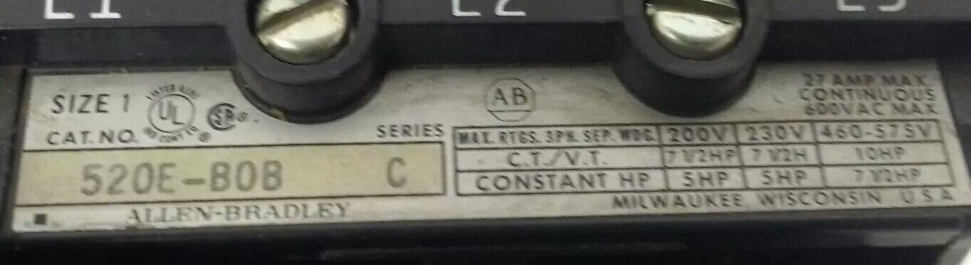 ALLEN BRADLEY, 520E-BOB , SER. C, STARTER, SIZE 1, 600V, 27A, 3PH, 120V COIL