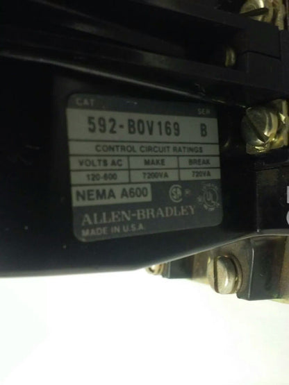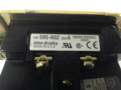 ALLEN BRADLEY 592-BOW16 SER. B OVERLOAD RELAY, 120-600V, W/ 595-A02 SER. A A600