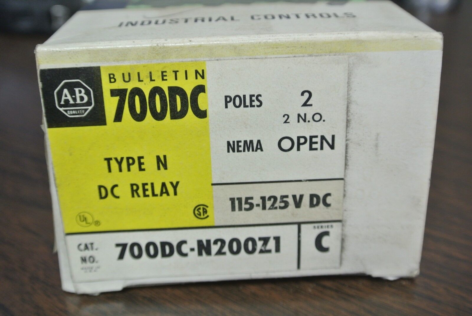 ALLEN-BRADLEY 700DC-N200Z1 TYPE N DC RELAY 115-125VDC, 2 N.O. - NEW SURPLUS
