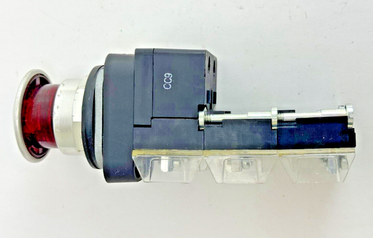 ALLEN-BRADLEY - 800T-FXTQH2RA5 SER. U - RED MUSHROOM PUSH/PULL BUTTON W/ 800T-XD4 SER. E (2) & 800T-XD1 SER. D - CONTACT BLOCKS