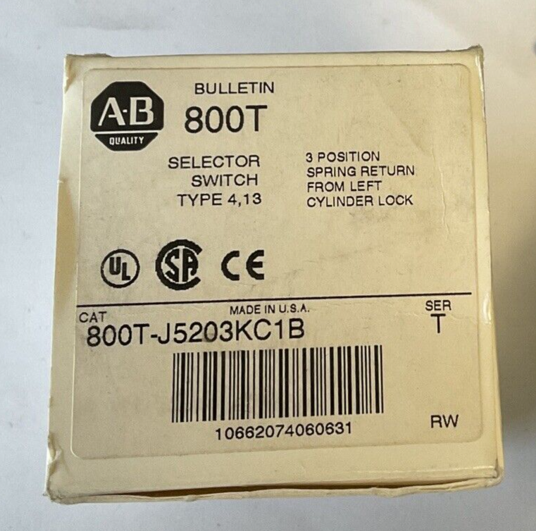 ALLEN BRADLEY 800T-J5203KC1B KEYED SELECTOR SWITCH 3POS. SRPING RETURN SER.T