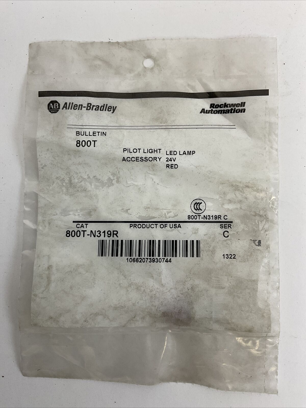 ALLEN BRADLEY 800T-N319R SER C PILOT LIGHT LED RED ACCESSORY 24V BULB
