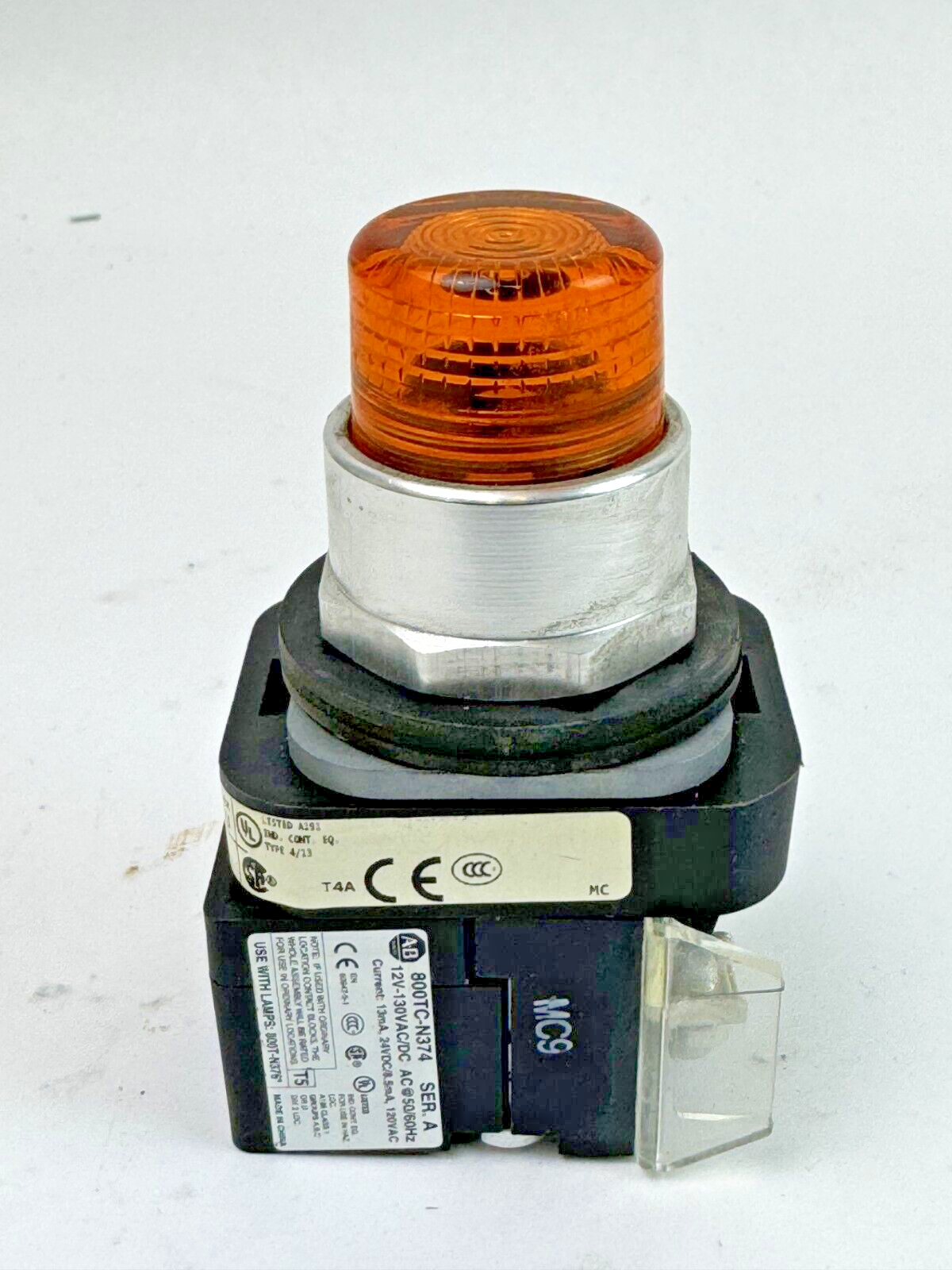 ALLEN-BRADLEY - 800T-QTH2A SER. U - AMBER ILLUMINATED PUSH BUTTON W/ 800T-XA SER. D - CONTACT BLOCK - 800TC-N374