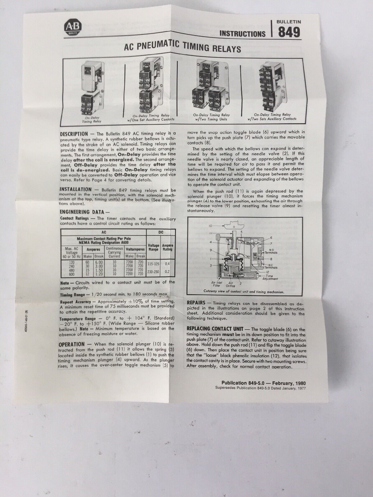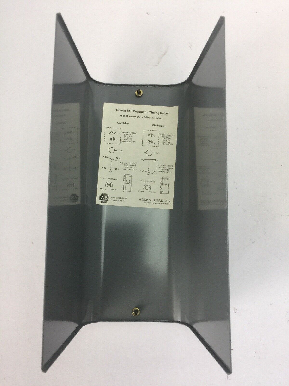 ALLEN BRADLEY 849-ZAD32 PNEUMATIC TIMING RELAY NEMA TYPE 1 21A224 COIL 120V 60HZ