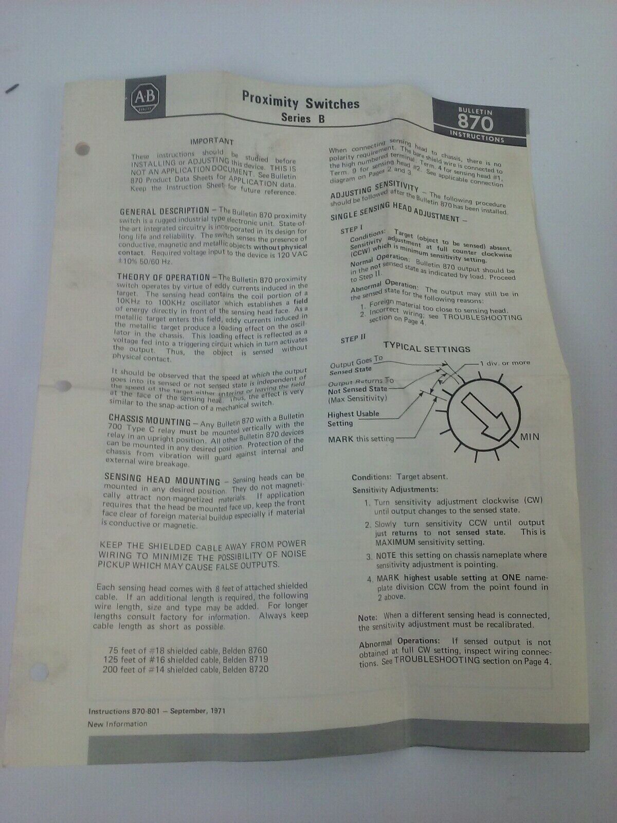 ALLEN BRADLEY 870-ZOD60 SERIES B PROXIMITY LIMIT SWITCH 120V 2 WATTS 10A 32VDC