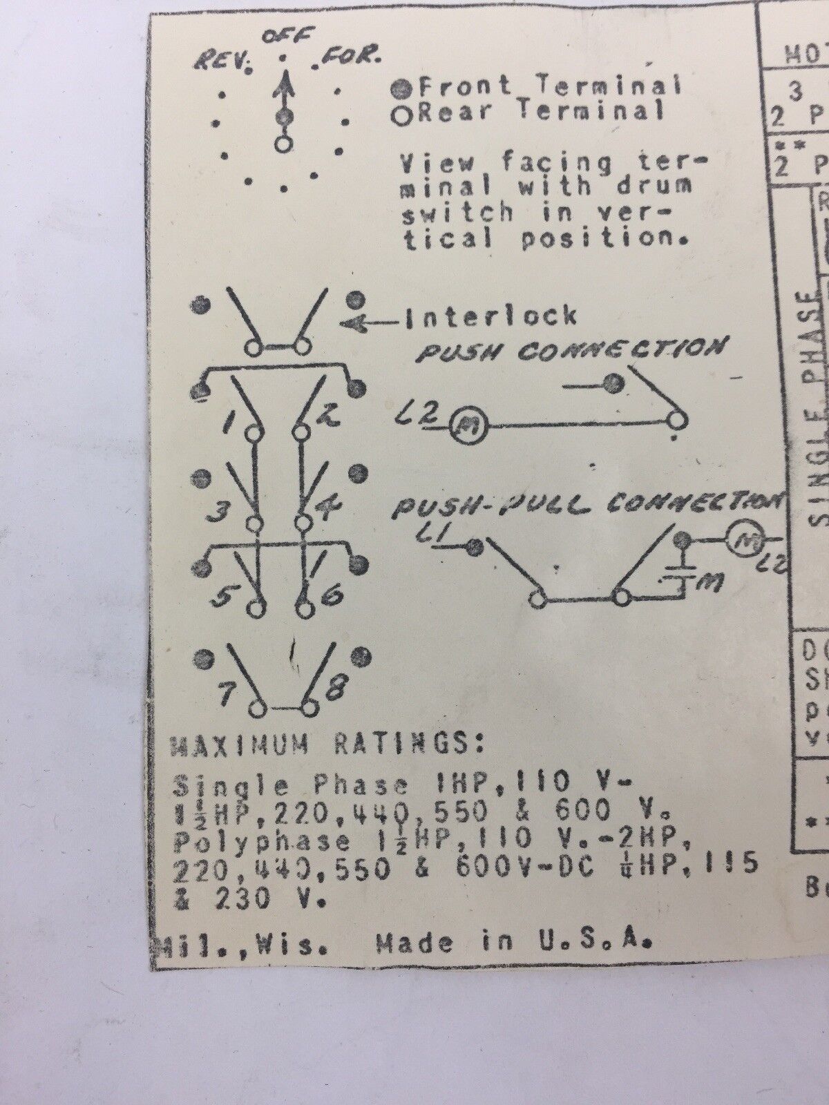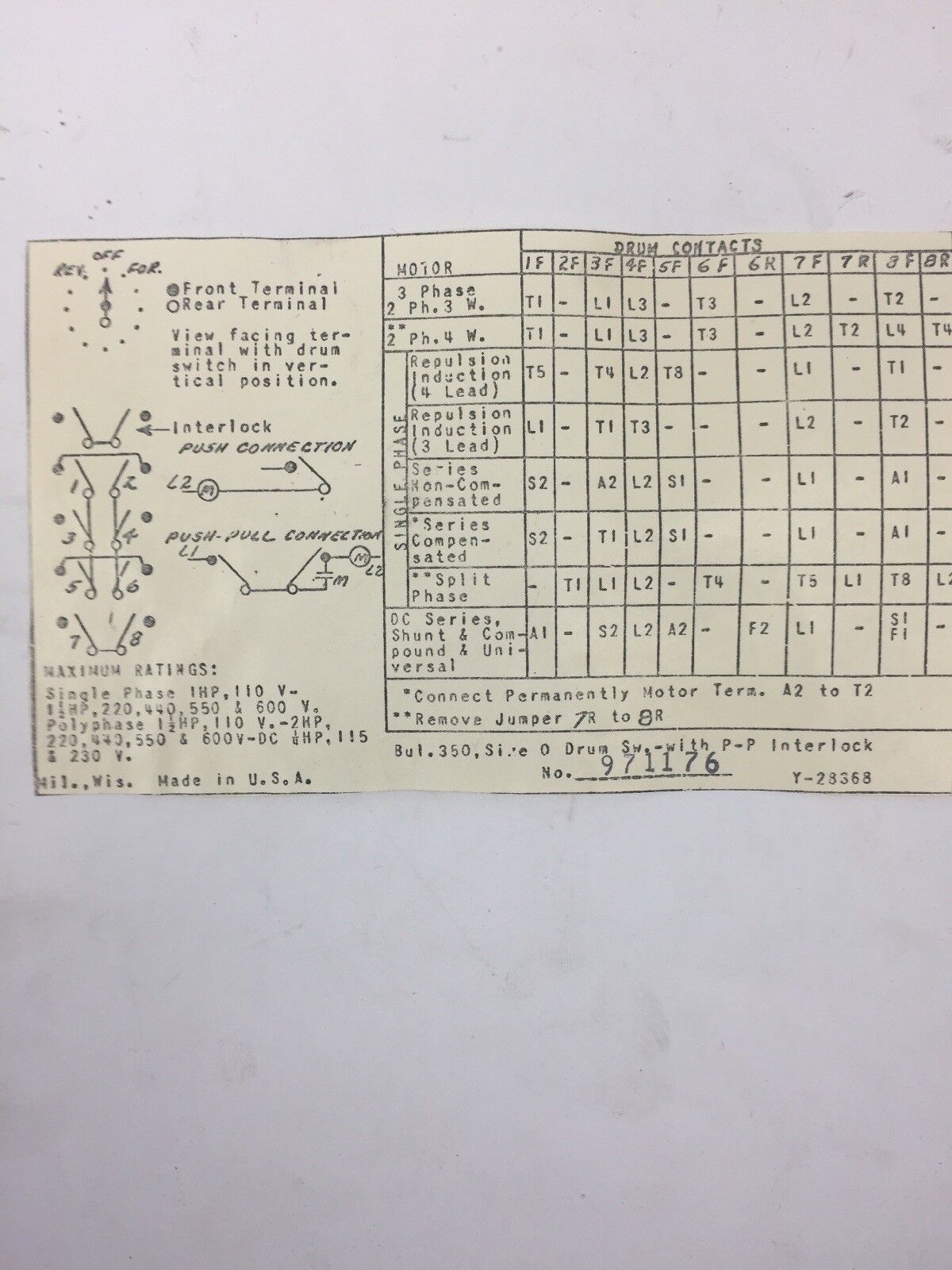 ALLEN BRADLEY 971176 REVERSING DRUM SWITCH 600V SIZE 0