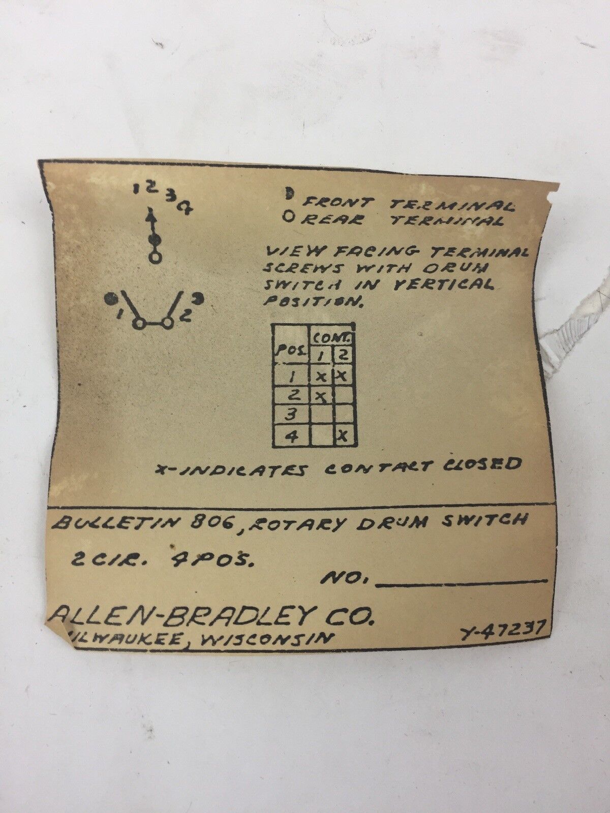 ALLEN BRADLEY F672729-1 ROTARY PILOT SWITCH SIZES 10 & 25 AMP