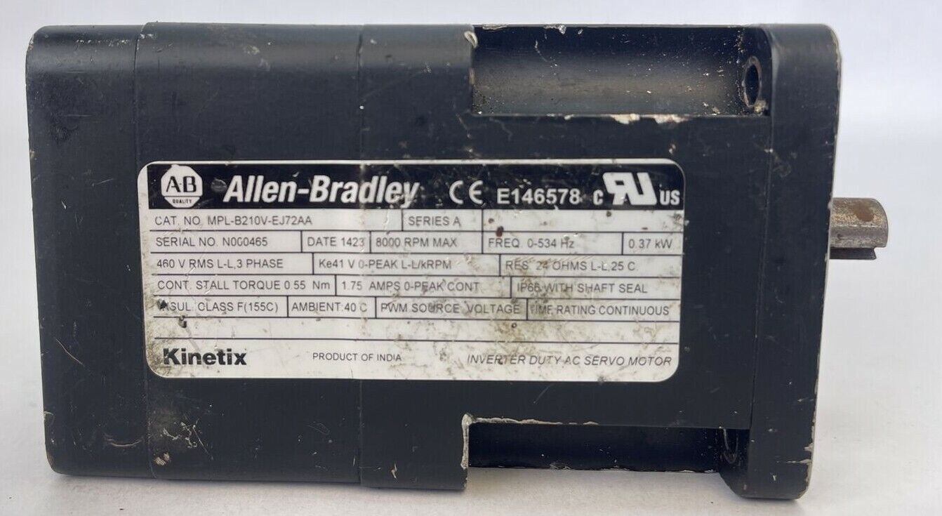 ALLEN BRADLEY MPL-B210V-EJ72AA SERVO MOTOR SER A 8000RPM 0.37kW 460V RMS L-L 3PH