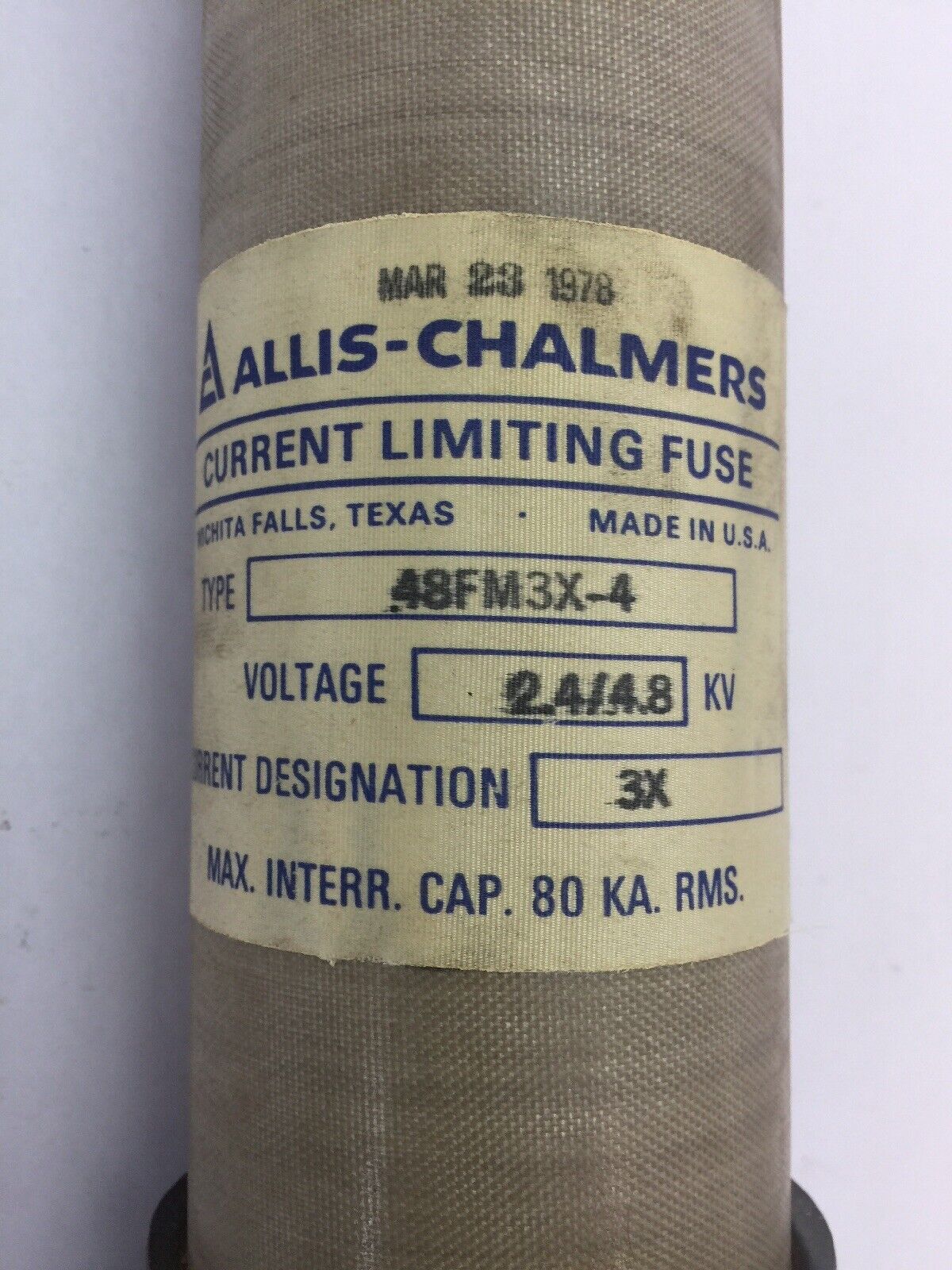 ALLIS-CHALMERS 48FM3X-4 CURRENT LIMITING FUSE 2400/4800V CURRENT DESIGNATION: 3X
