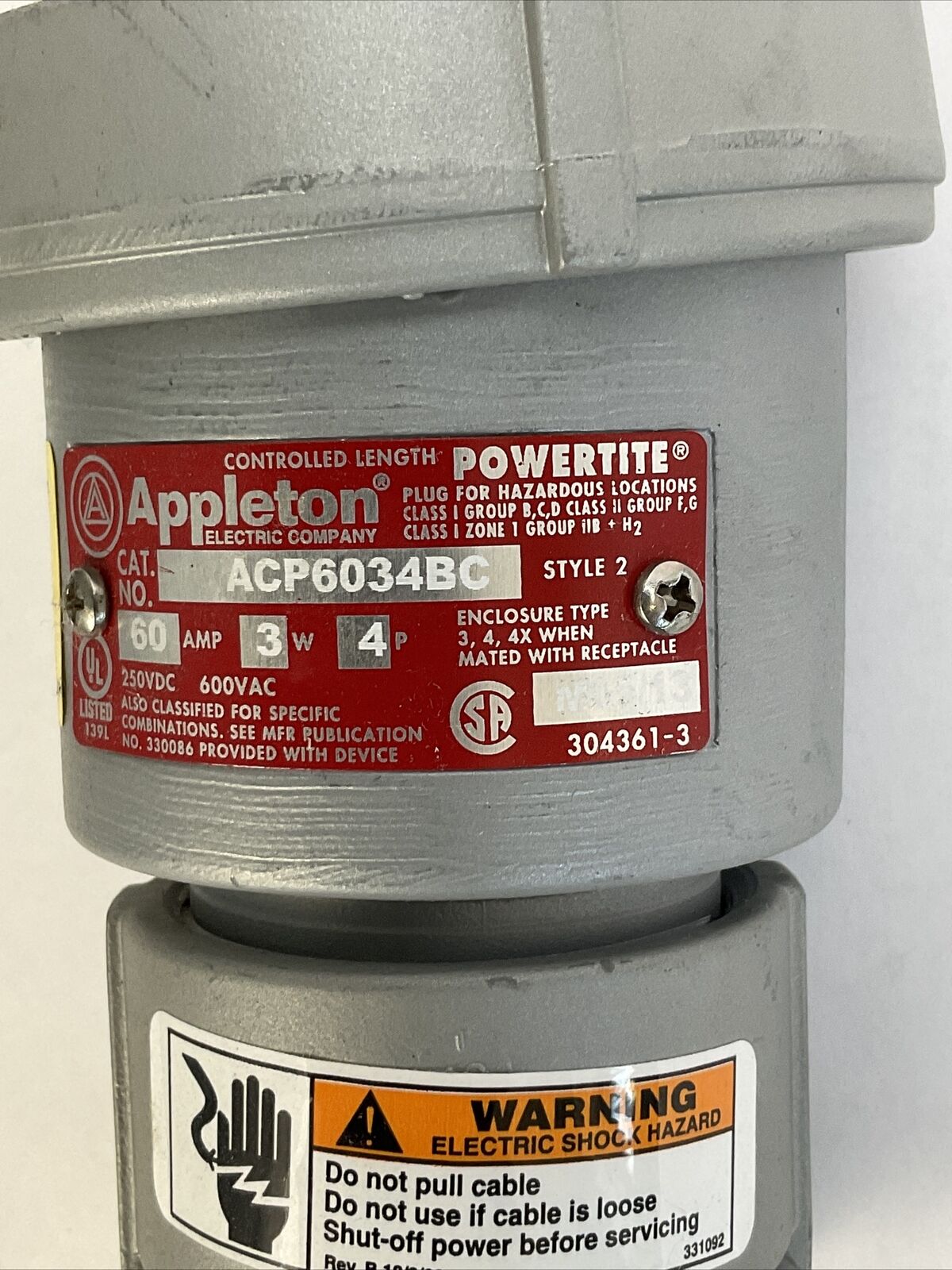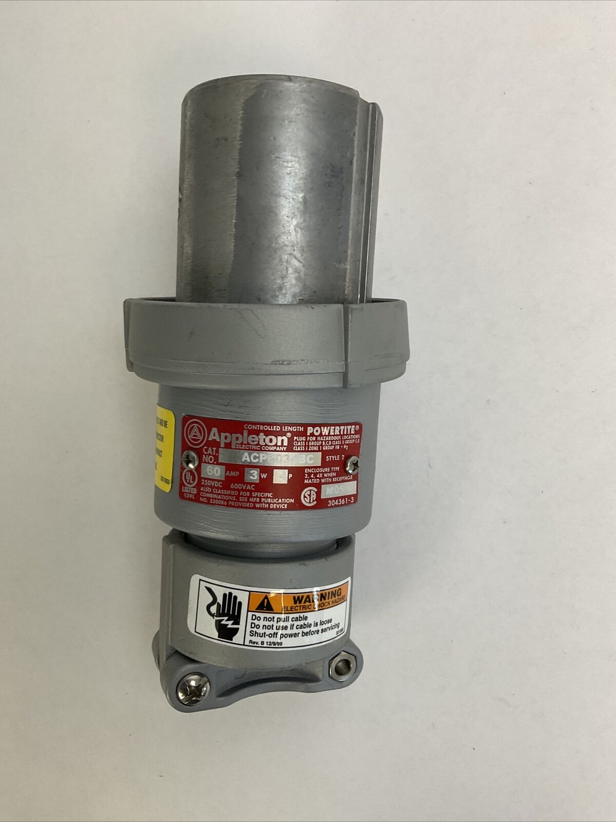APPLETON ACP6034BC ALUMIMUM 60AMP POWER TITE CLAMPING RING PLUG 250VDC 600VAC 3W 4P