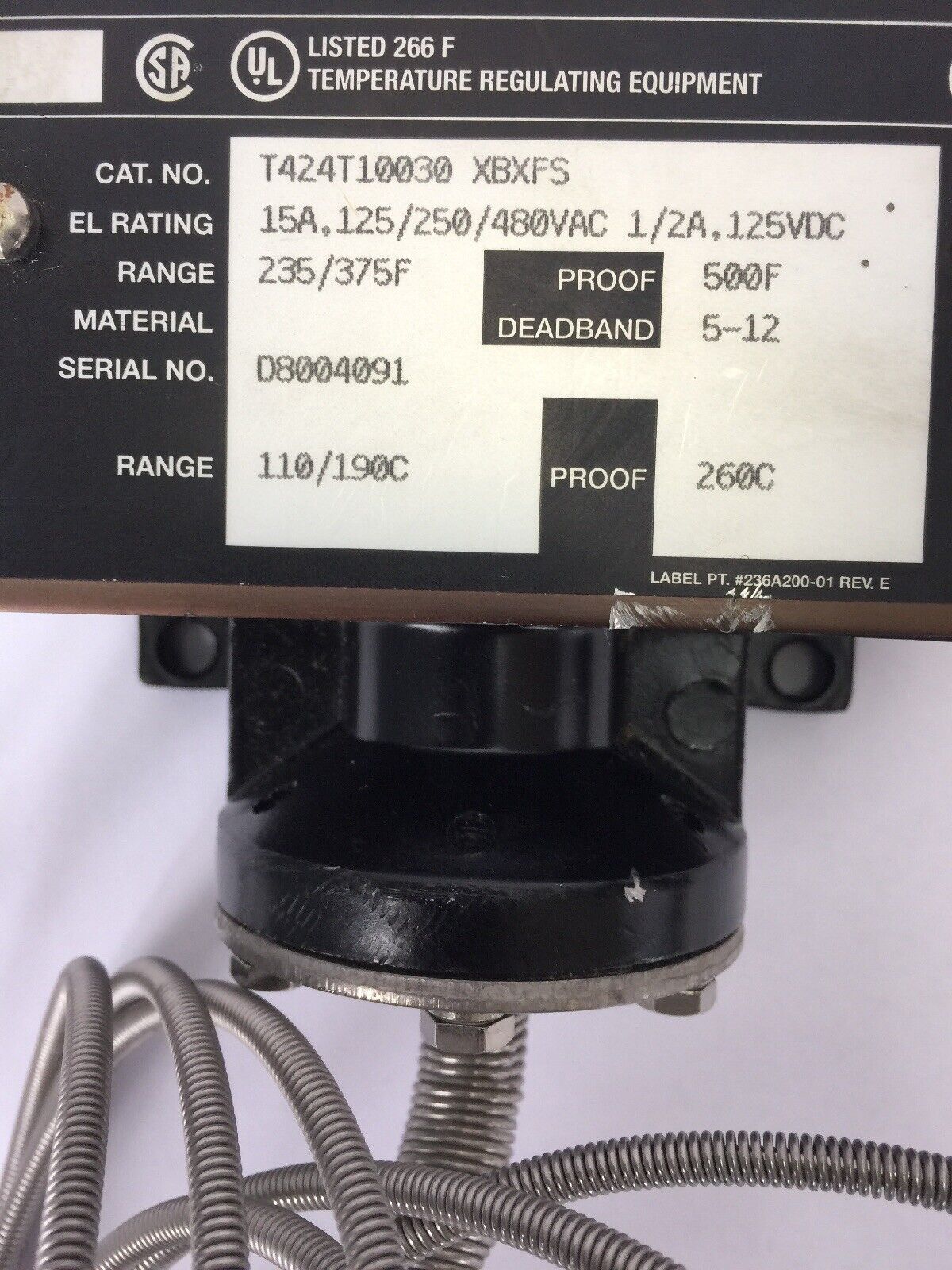 ASHCROFT T424T10030 XBXFS TEMPERATURE REGULATING EQUIPMENT 15A,125/250/480VAC 1/2A,125VDC RANGE 235/375F PROOF 500F DEADBAND 5-12 RANGE 110/190C PROOF 260C