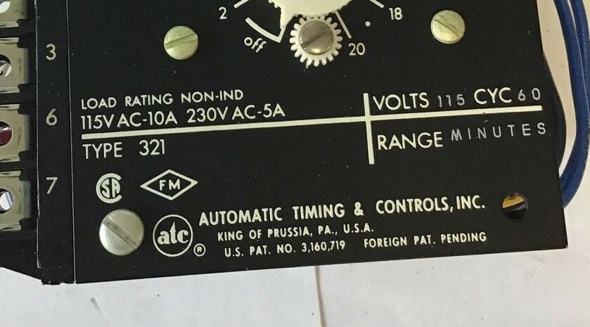 ATC 321B-050-A-01T1XX TIME DELAY RELAY 115VOLT 60CYC TYPE 321
