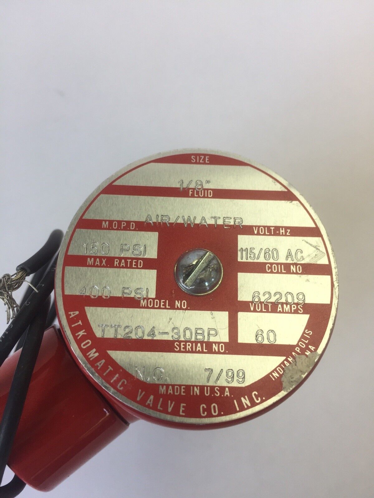 ATKOMATIC VALVE TT204-30BP SOLENOID VALVE 1/8" 115VAC 60HZ 400PSI 60AMP