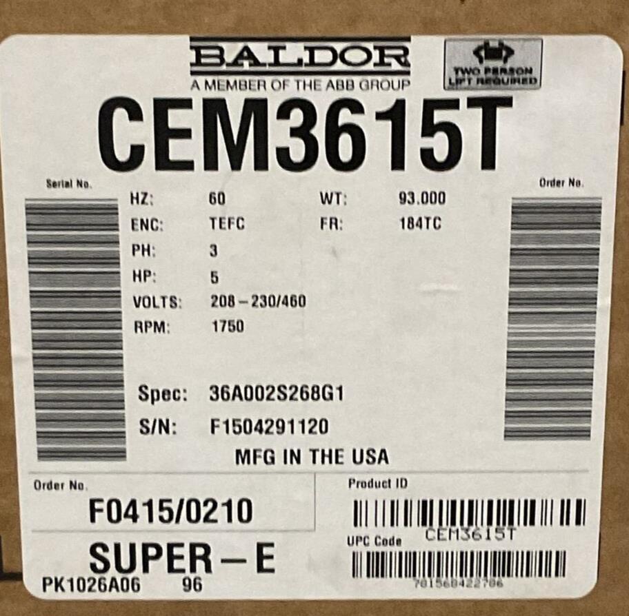 BALDOR CEM3615T MOTOR 208-230/460V 1750RPM 5HP 3PH
