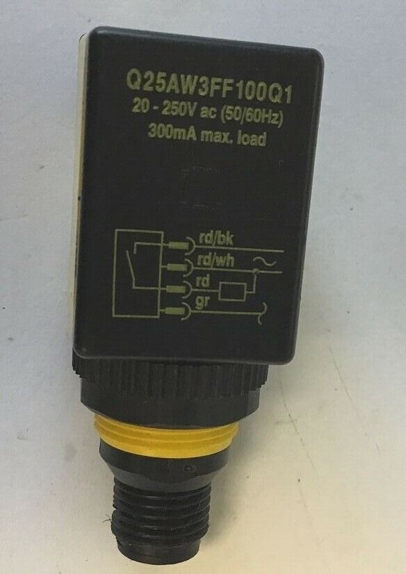 BANNER Q25AW3FF100Q1 RIGHT ANGLE BASE MOUNT SENSOR 20-250VAC 50/60HZ 300MA