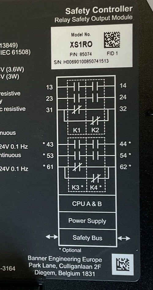 BANNER XS1RO SAFETY CONTROLLER 250VAC 24VDC 6A RELAY SAFETY OUTPUT MODULE