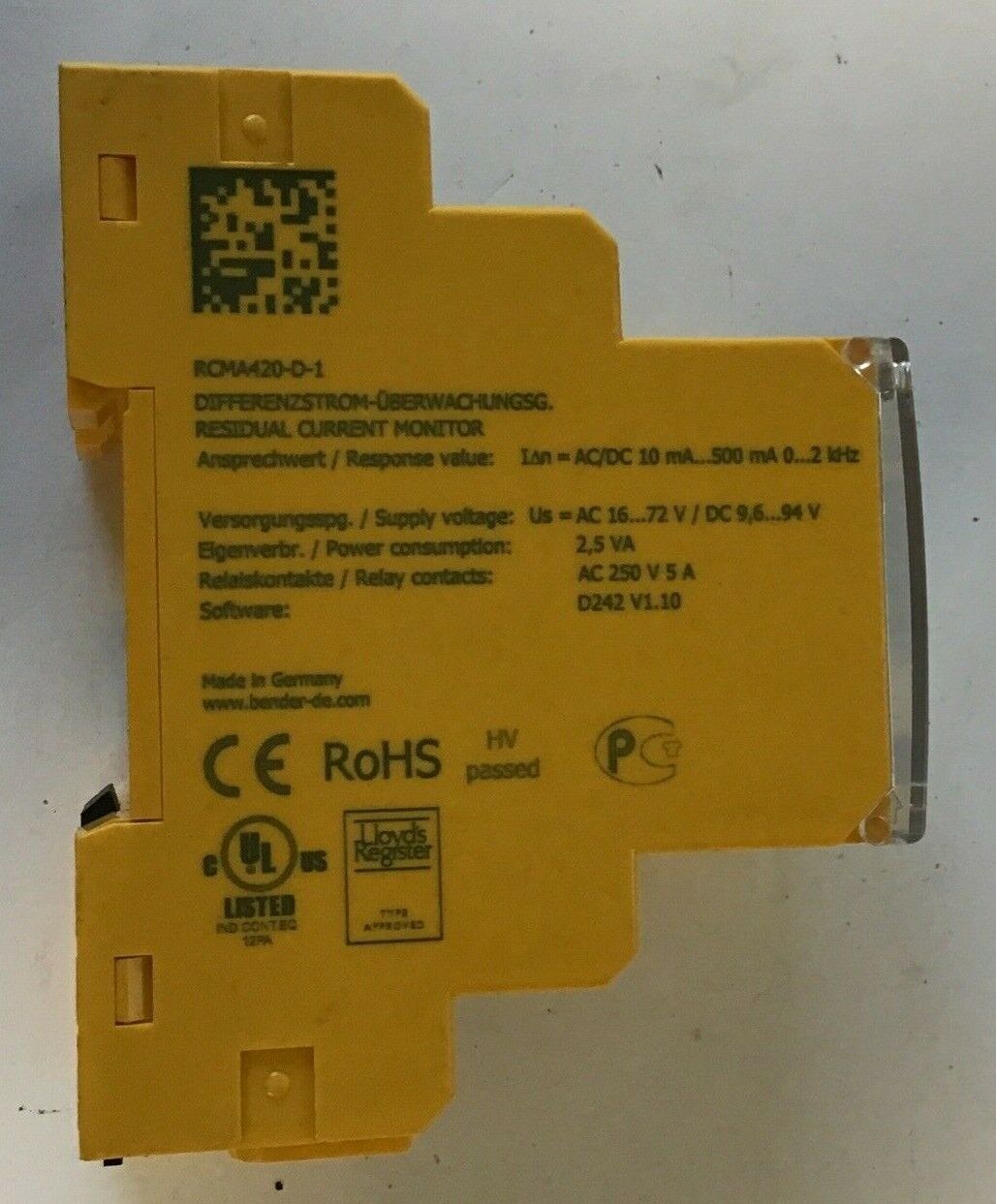 BENDER RCMA420 250VAC 5A RESIDUAL CURRENT MONITOR