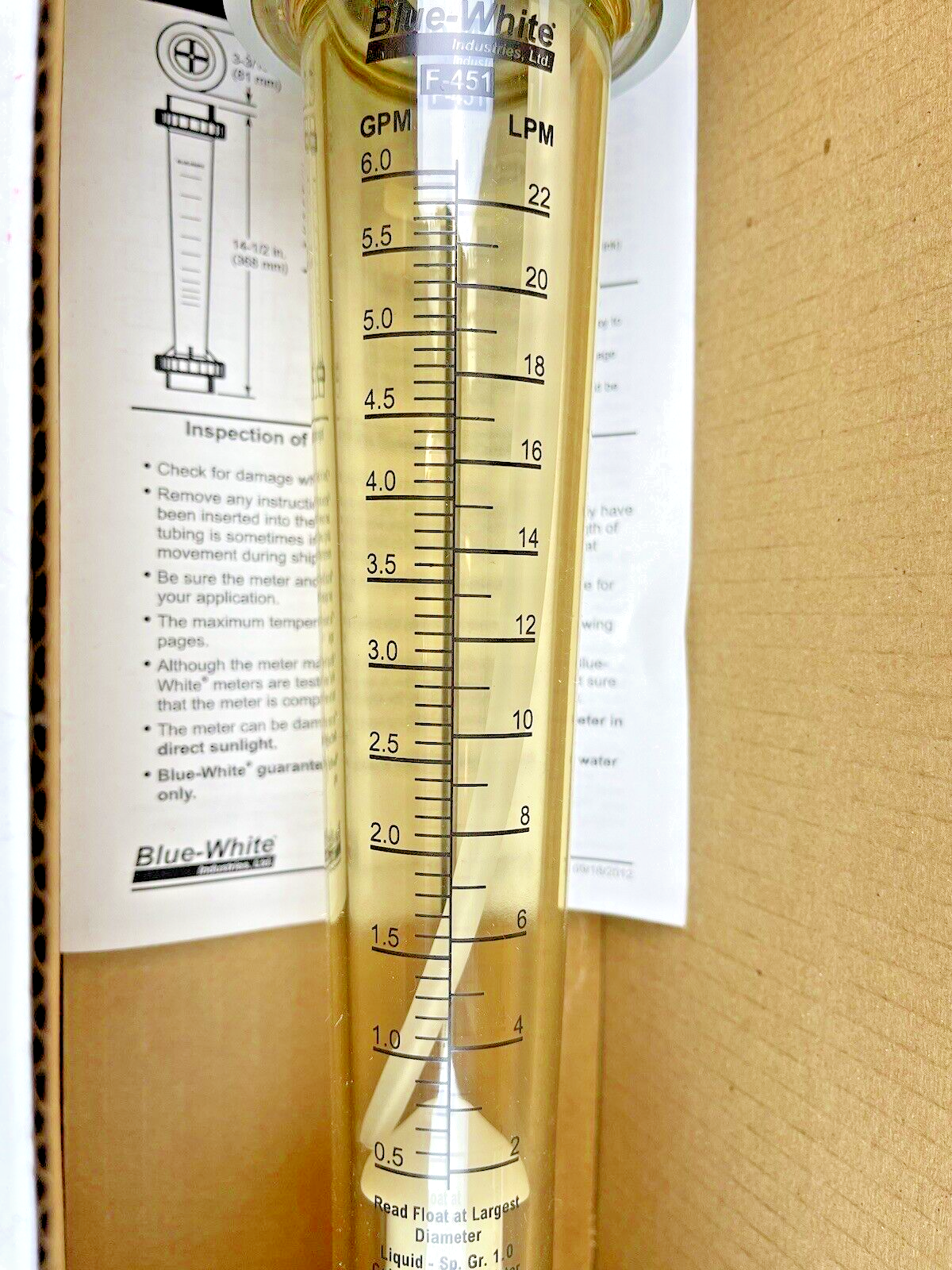BLUE-WHITE - F-451 SERIES 1-1/2" .5-6 GPM - PTFE FLOAT, SS ROD, AND VITON O-RING