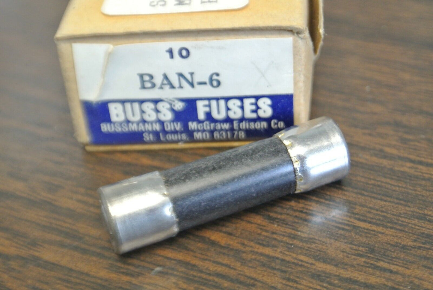 BOX of 10 / BUSS BAN-6 MIDGET FUSE / 6A / 250V / NEW SURPLUS / BAN6
