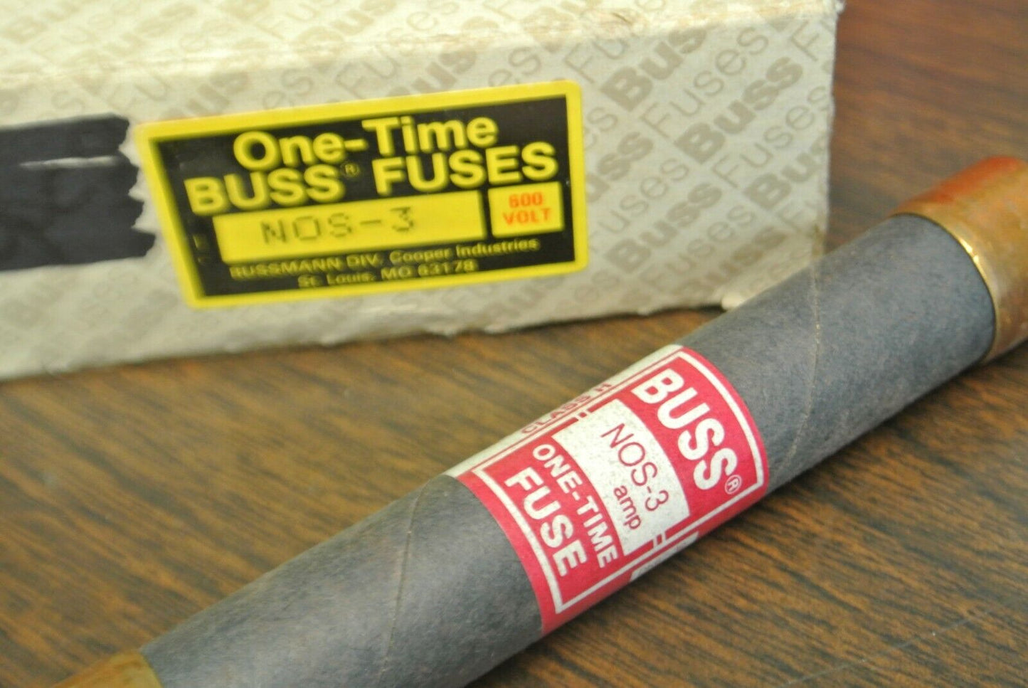 BOX of 10 / BUSSMANN NOS3 ONE-TIME FUSES / 3A / 600V / NEW SURPLUS