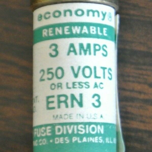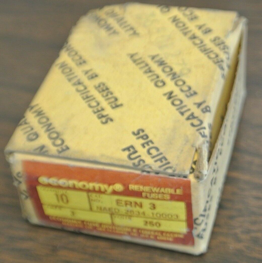 BOX of 10 / ECONOMY ERN3 RENEWABLE FUSE / 3A / 250V / NEW SURPLUS / ERN 3