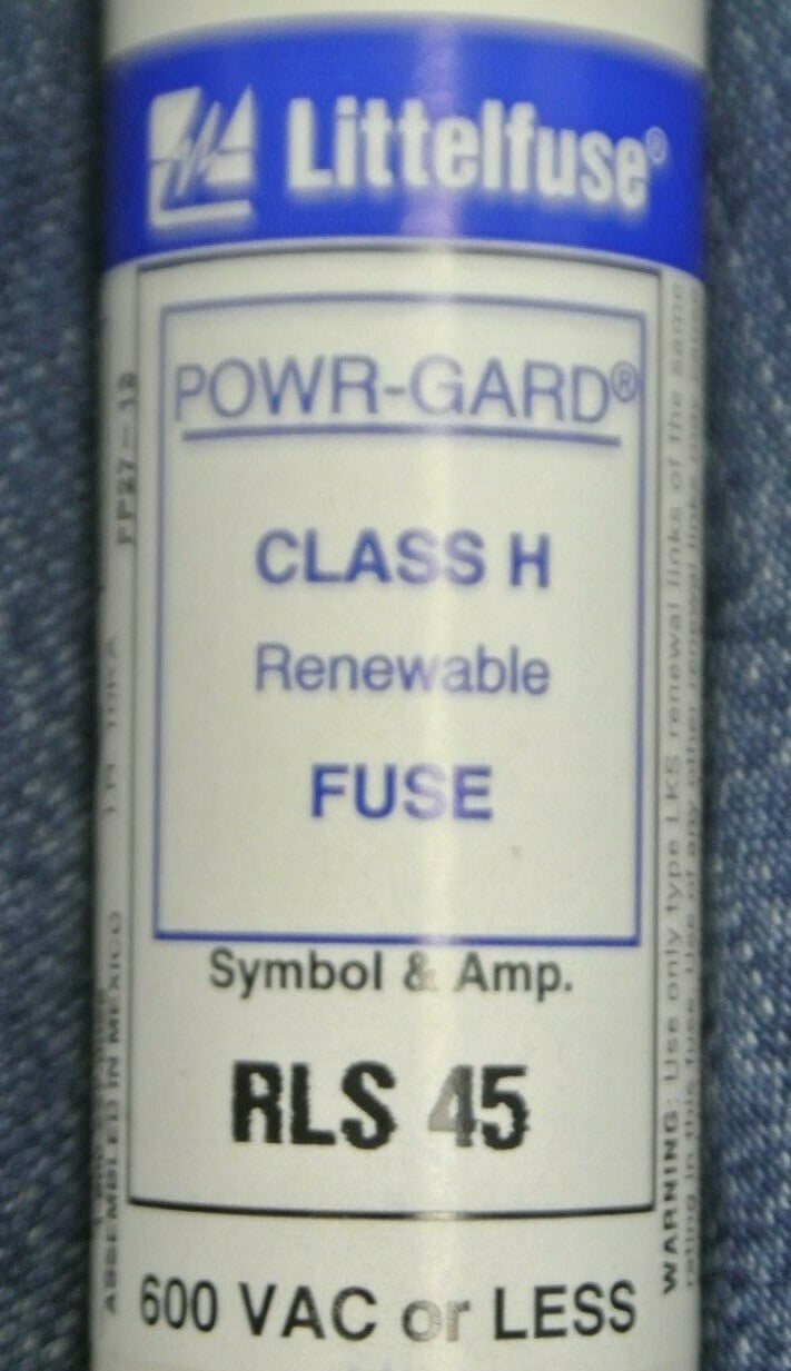 BOX of 10 / LITTELFUSE RLS45 POWR-GARD RENEWABLE FUSE 45A / 600V / NEW SURPLUS