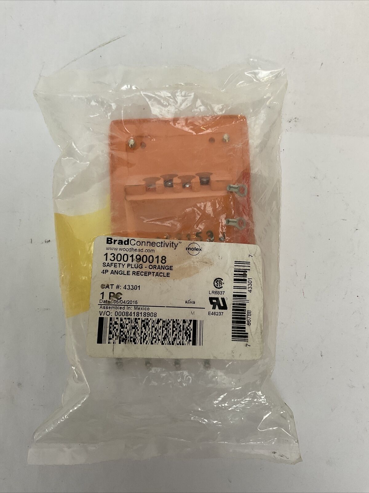 BRAD CONNECTIVITY 1300190018 SAFETY PLUG ORANGE 4P ANGLE RECEPTACLE