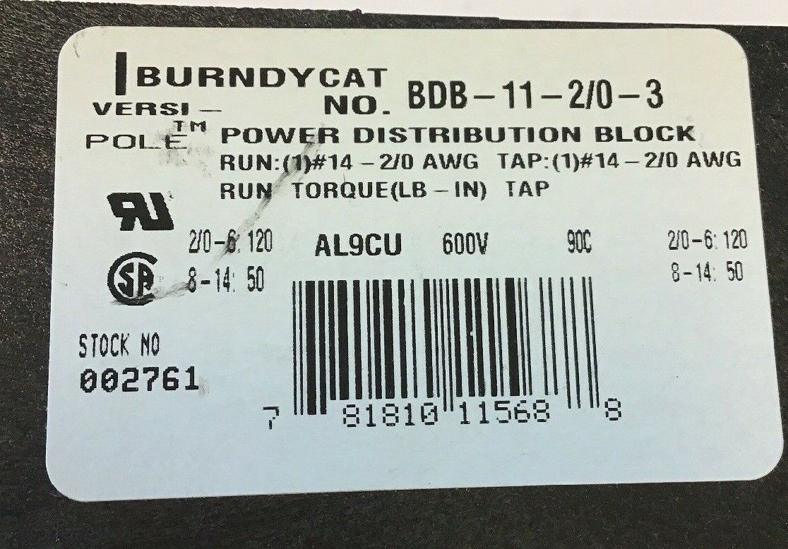 BURNDY BDB-11-2/0-3 POWER DISTRIBUTION BLOCK VERSI-POLE